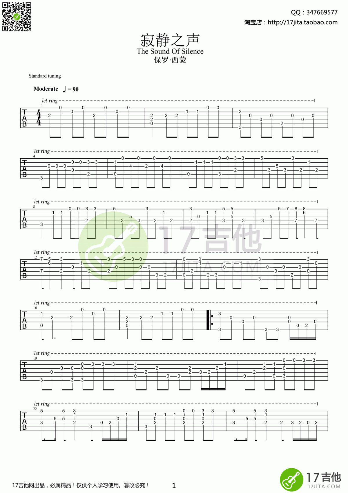 曲谱介绍: 保罗西蒙《寂静之声》吉他独奏谱,共有2张高清图谱,免翻页排版设计。