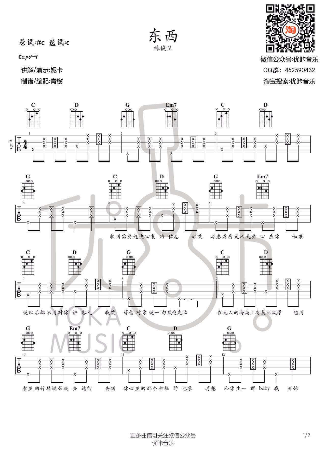 东西吉他谱 - 林俊呈 - C调吉他弹唱谱