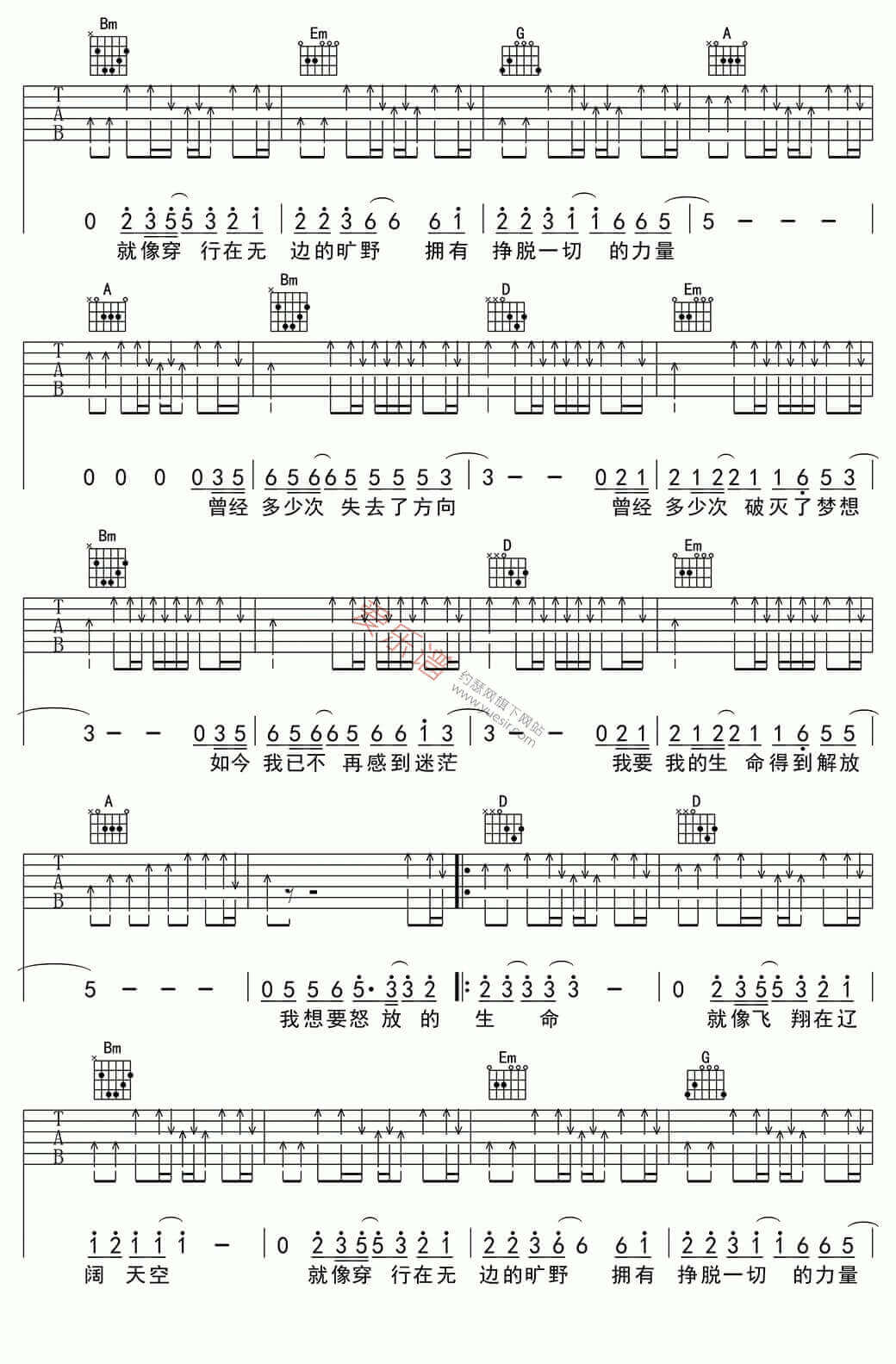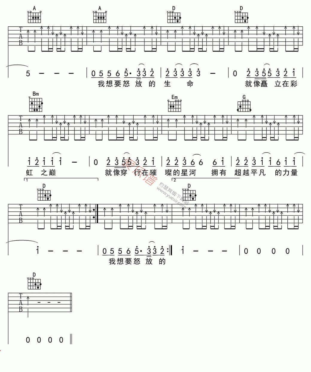 怒放的生命吉他谱 - 汪峰 - D调吉他弹唱谱