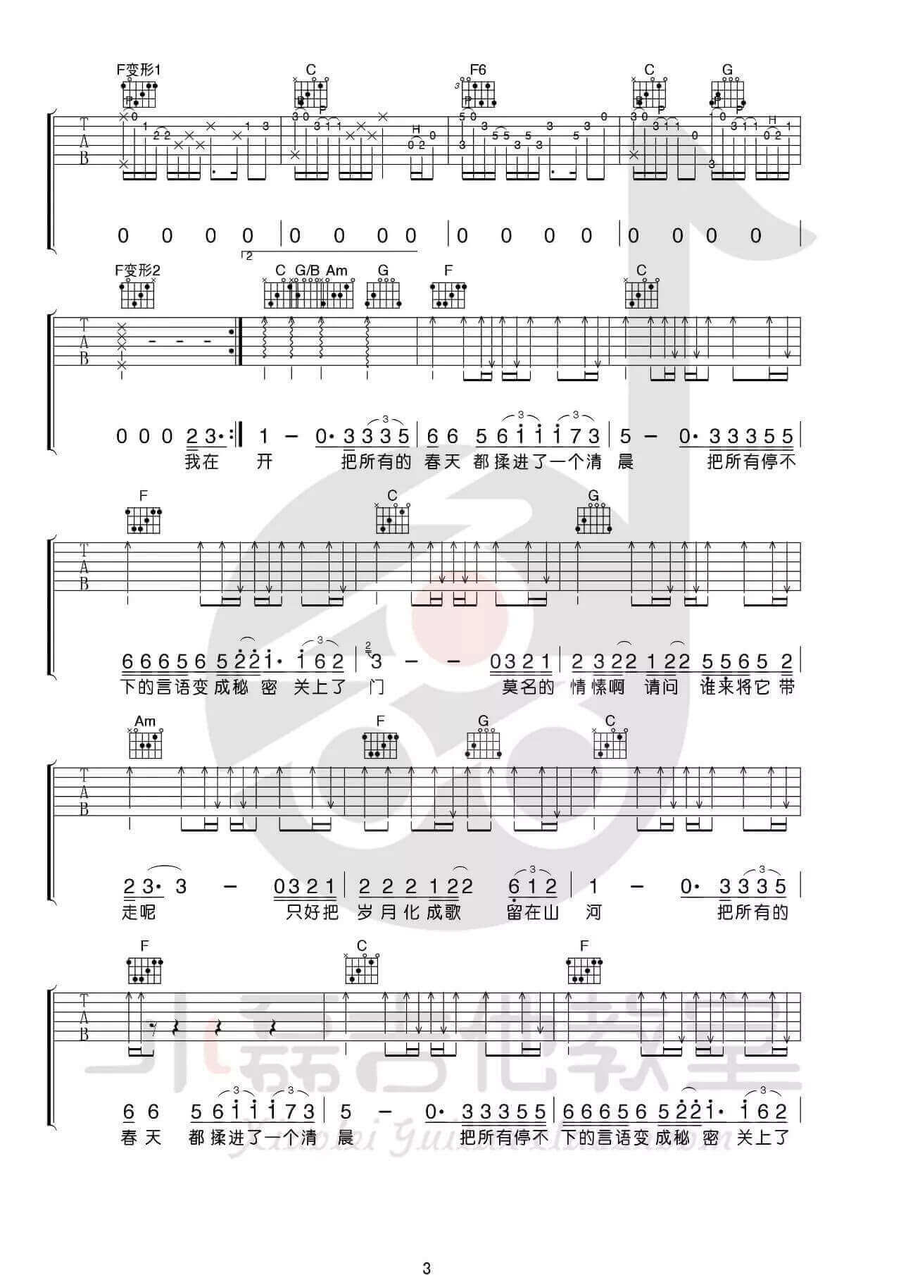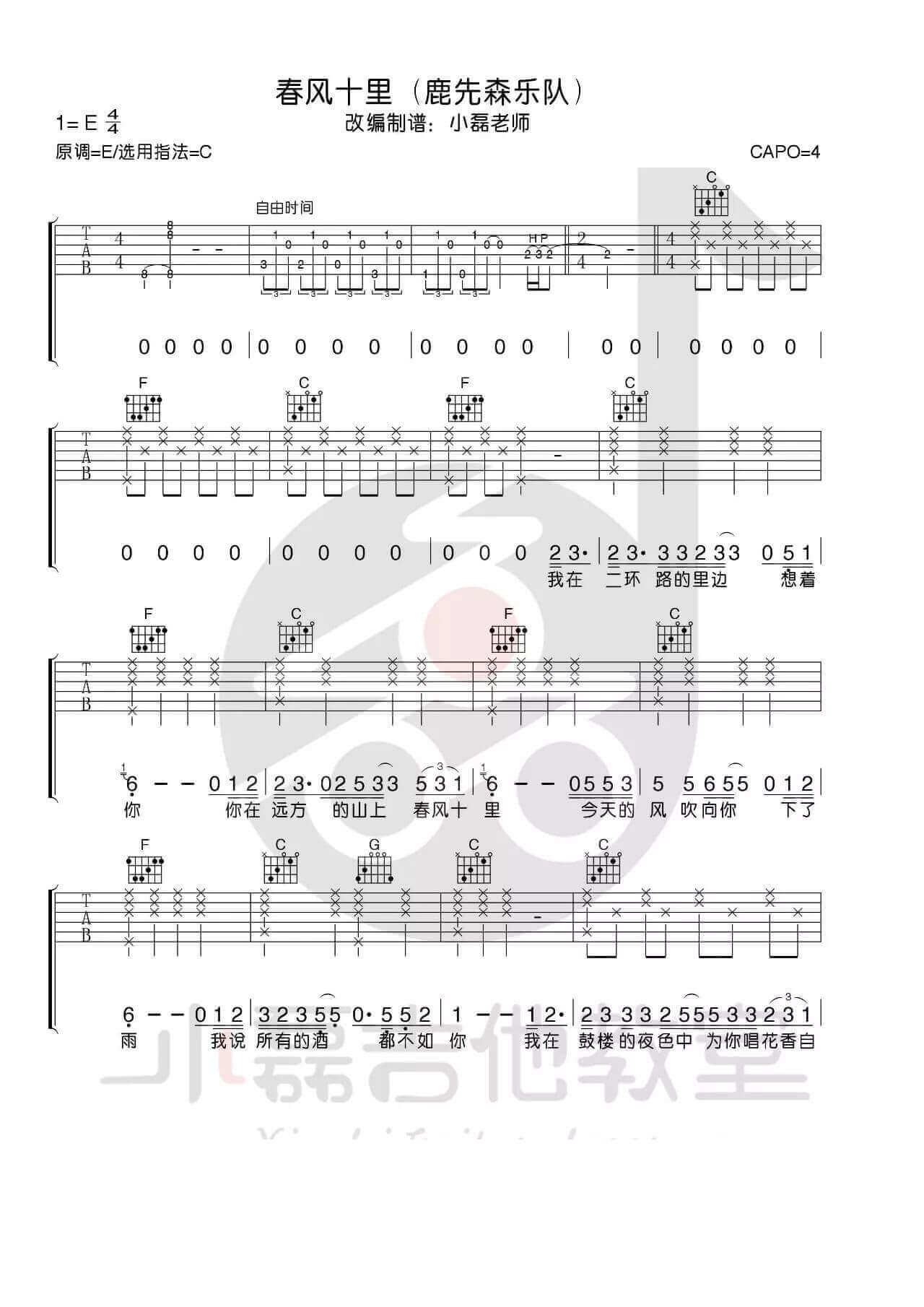 春风十里吉他谱 - 鹿先森乐队 - C调吉他弹唱谱