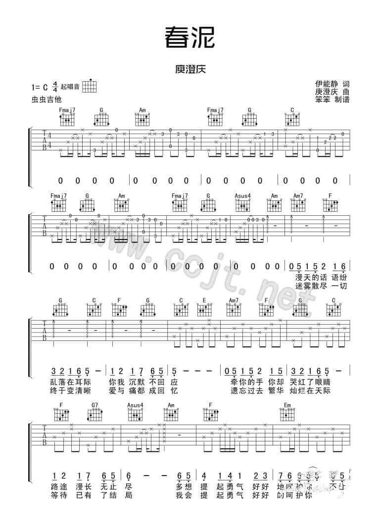 当前位置:琴谱网>吉他弹唱>春泥