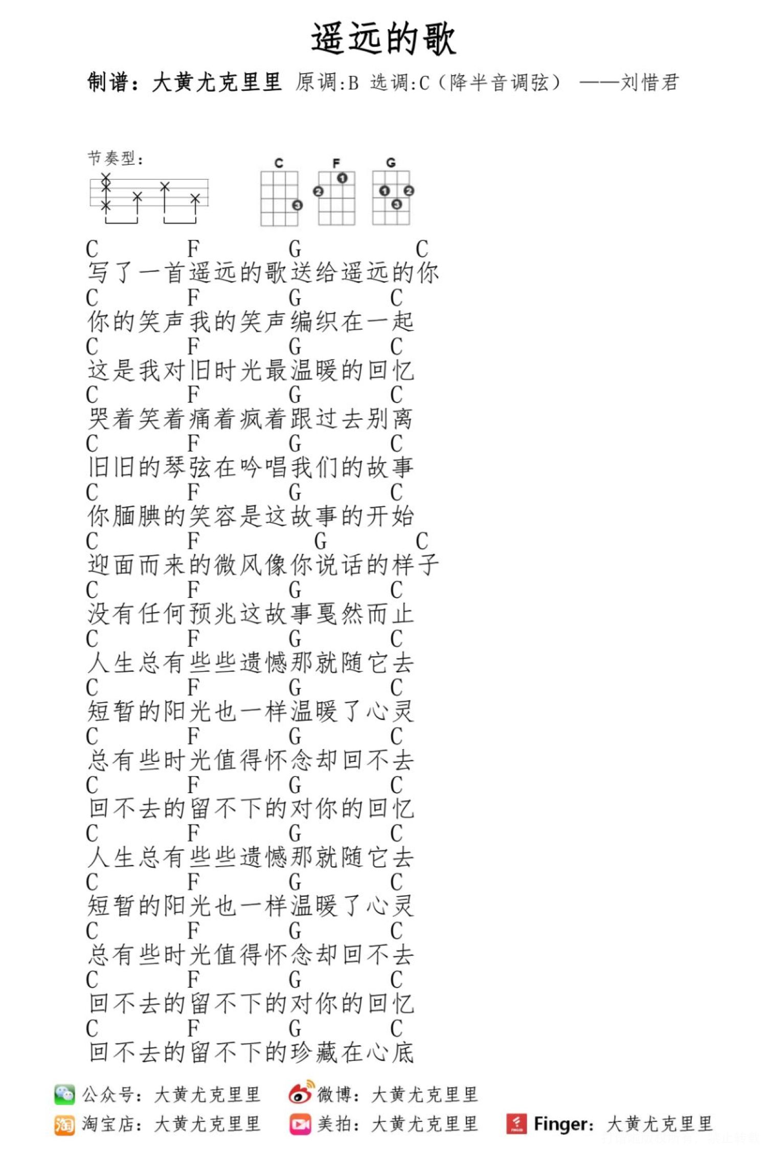 曲谱介绍: 《遥远的歌》尤克里里谱