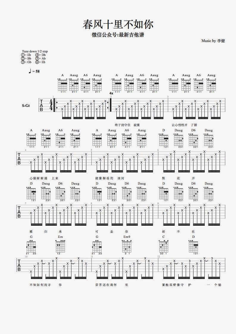 春风十里不如你吉他谱 - 李健 - A调吉他弹唱谱