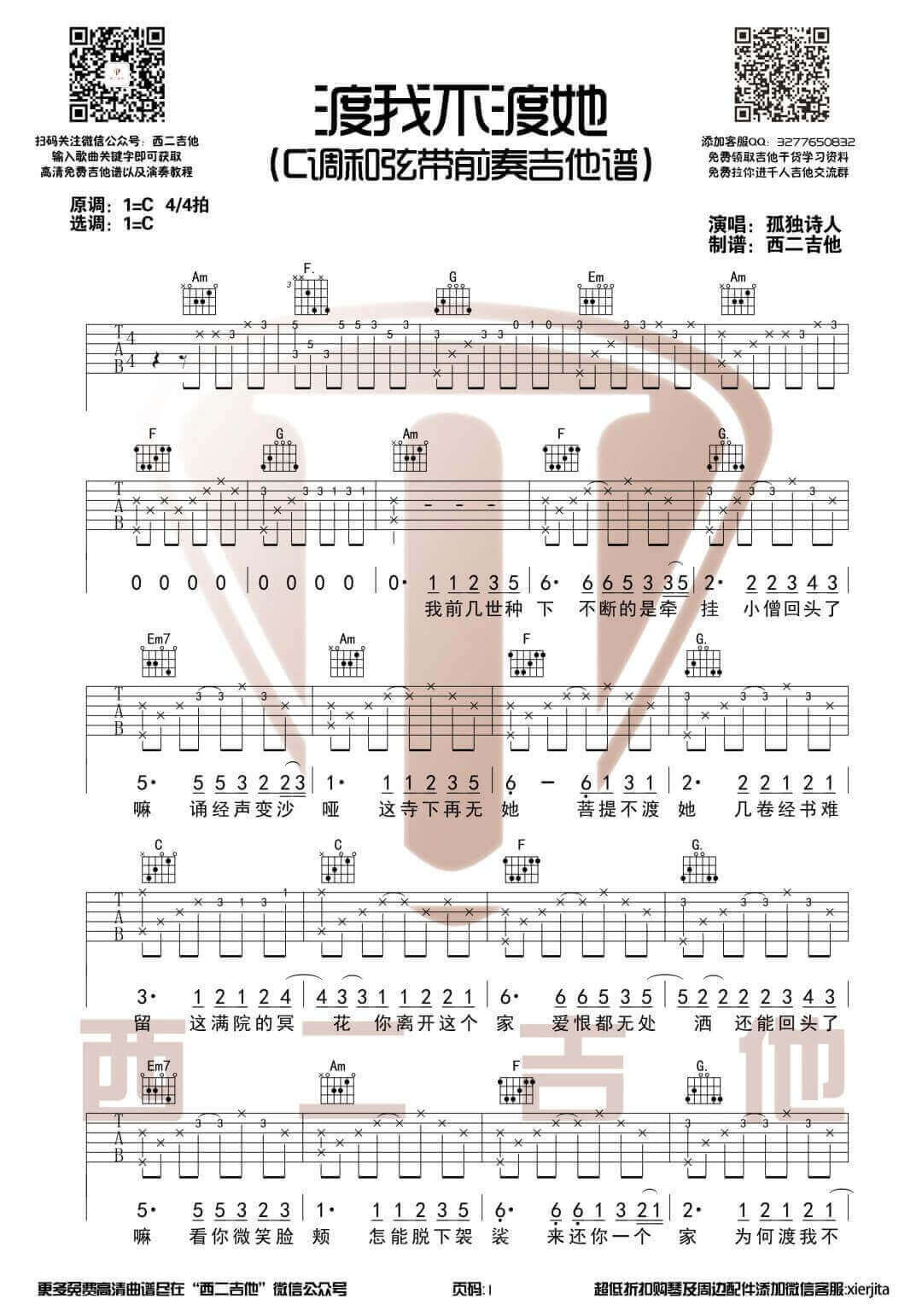 曲谱介绍: 渡我不渡她吉他谱采用了C调指法,由西二吉他编配完成。另外,这首领悟吉他谱也超级好听,小伙伴们有福啦,还不去练起来?