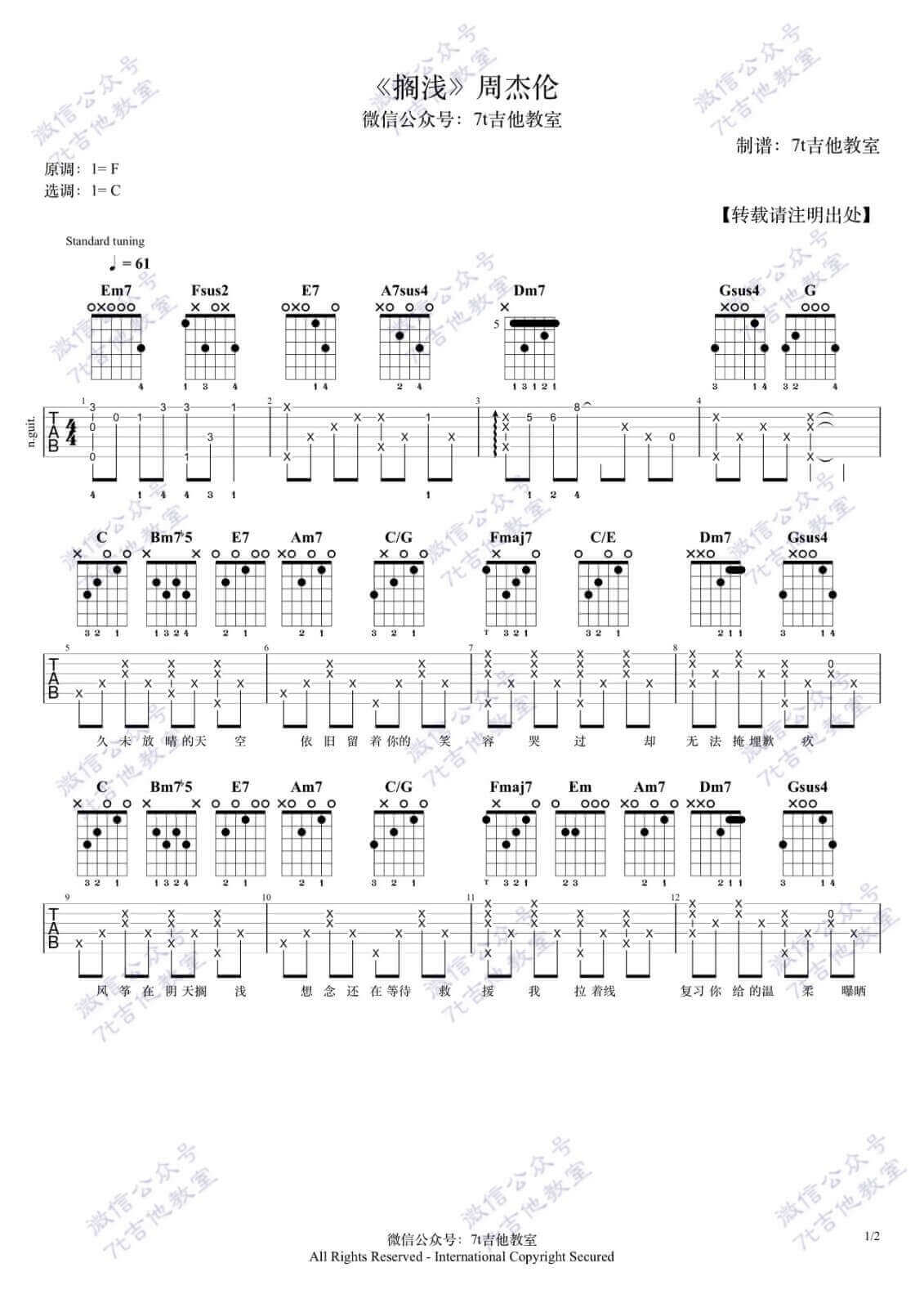 吉他弹唱C调来源:7t吉他194 浏览2024-01-28 18:12发布图谱共2页
