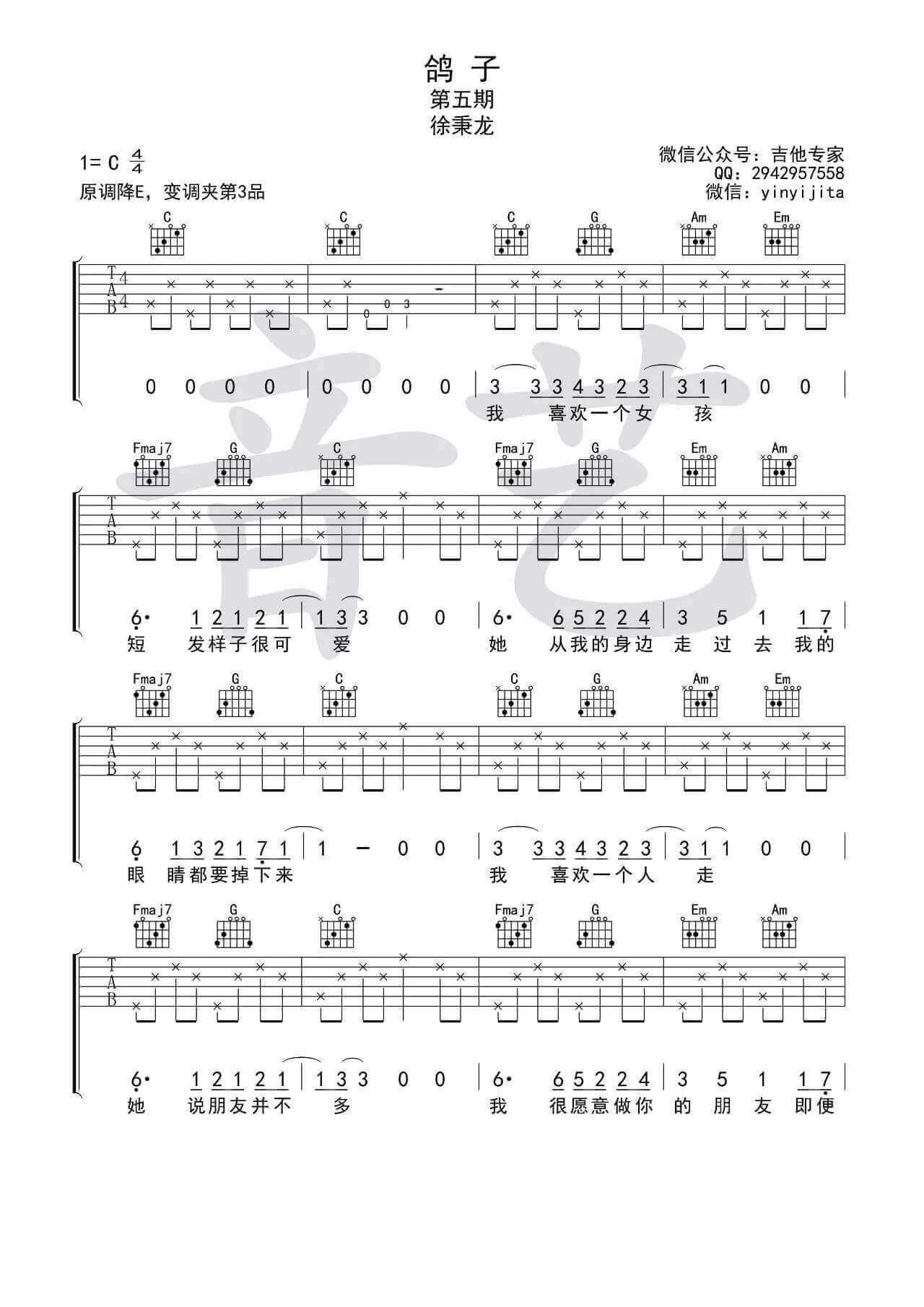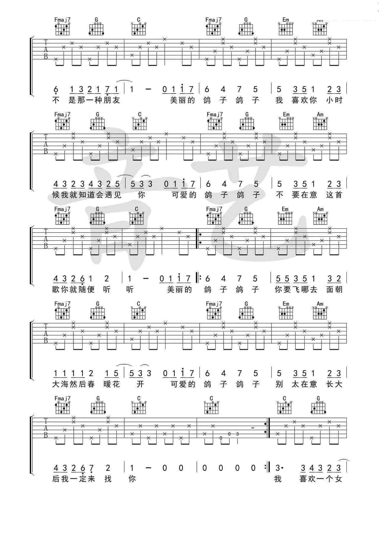 当前位置:琴谱网>吉他弹唱>鸽子