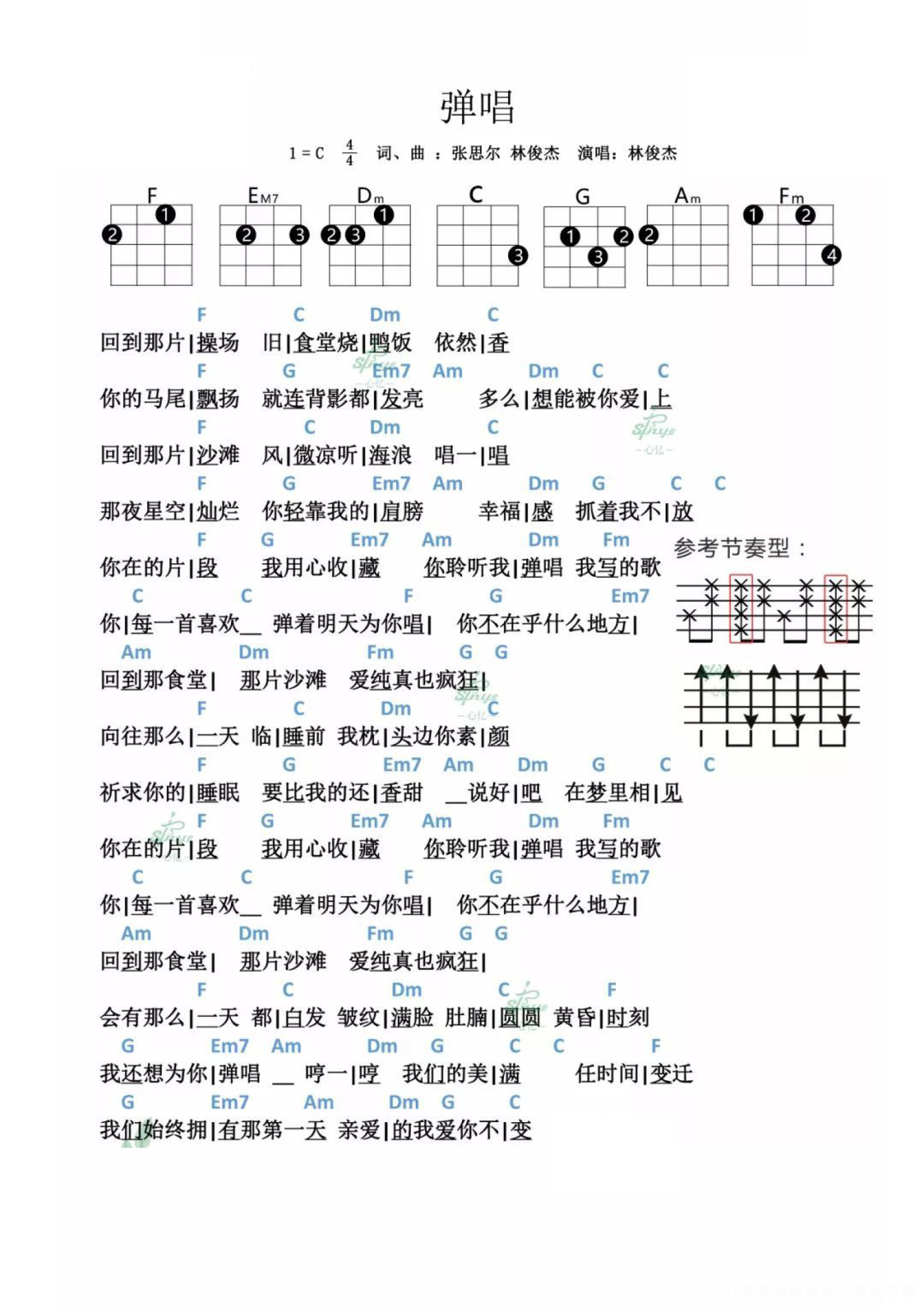 曲谱介绍: 《弹唱》尤克里里谱