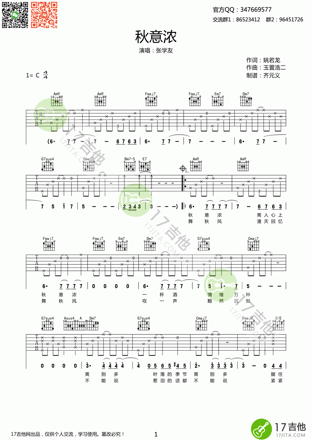 秋意浓吉他谱 - 张学友 - C调吉他弹唱谱