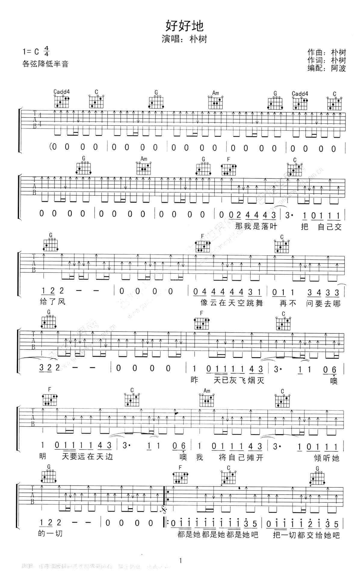 曲谱介绍: 好好地吉他谱采用了C调指法,由阿波编配完成。另外一首,爱情鸟吉他谱也很赞,小伙伴可以愉快的学习起来了。