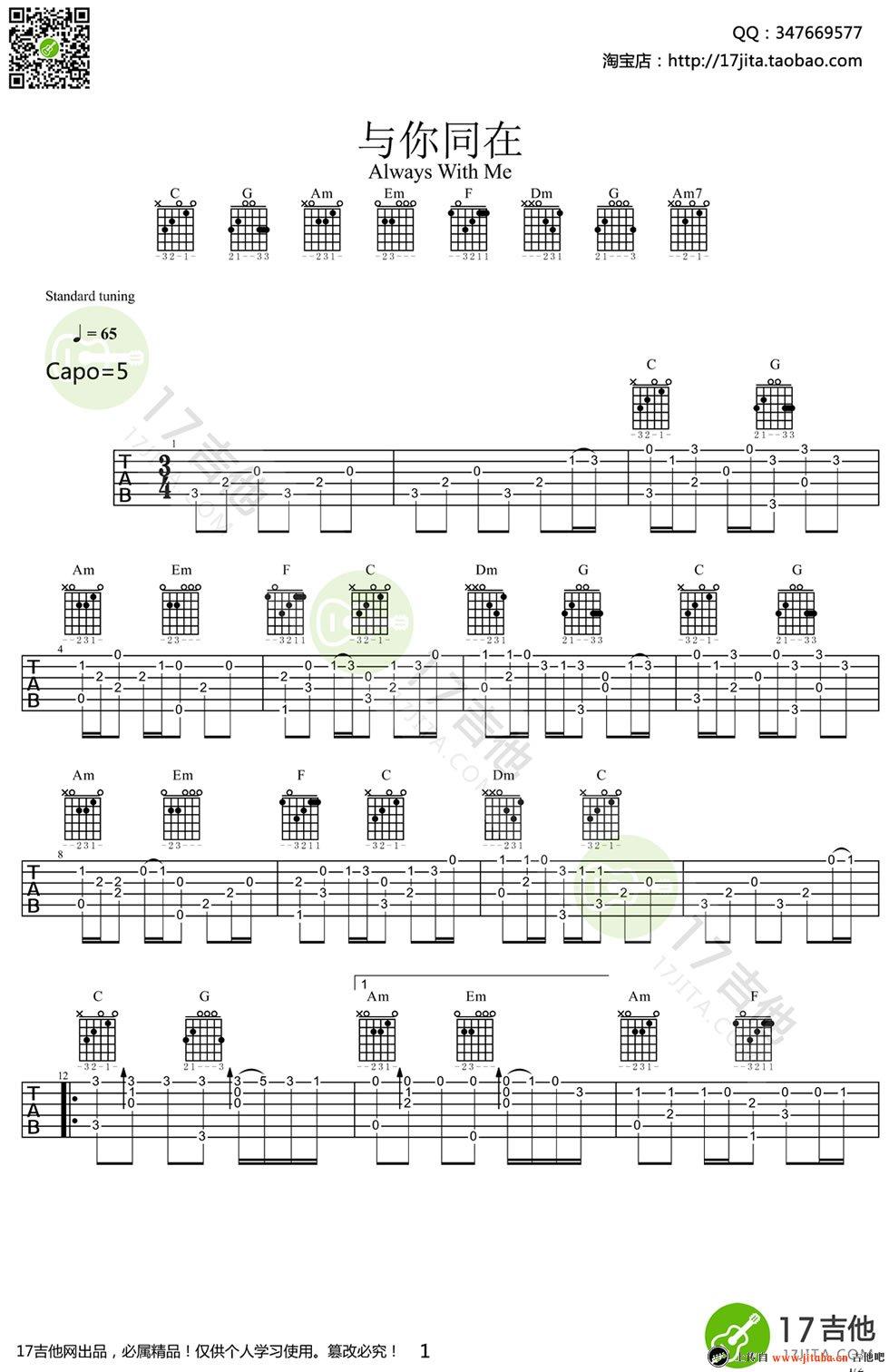 当前位置:琴谱网>吉他独奏>永远同在