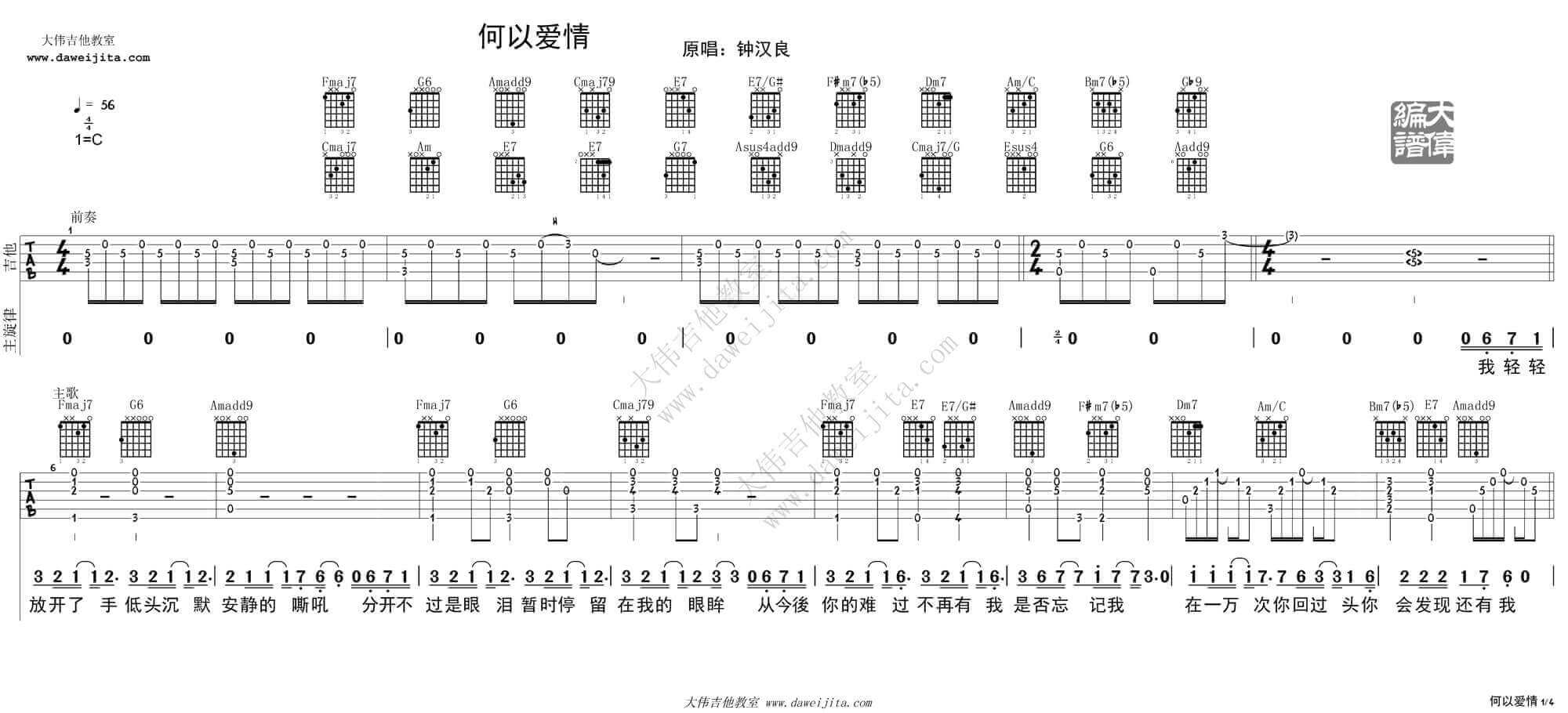 何以爱情吉他谱 - 钟汉良 - C调吉他弹唱谱
