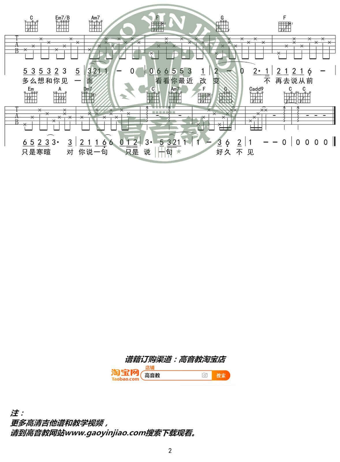当前位置:琴谱网>吉他弹唱>好久不见