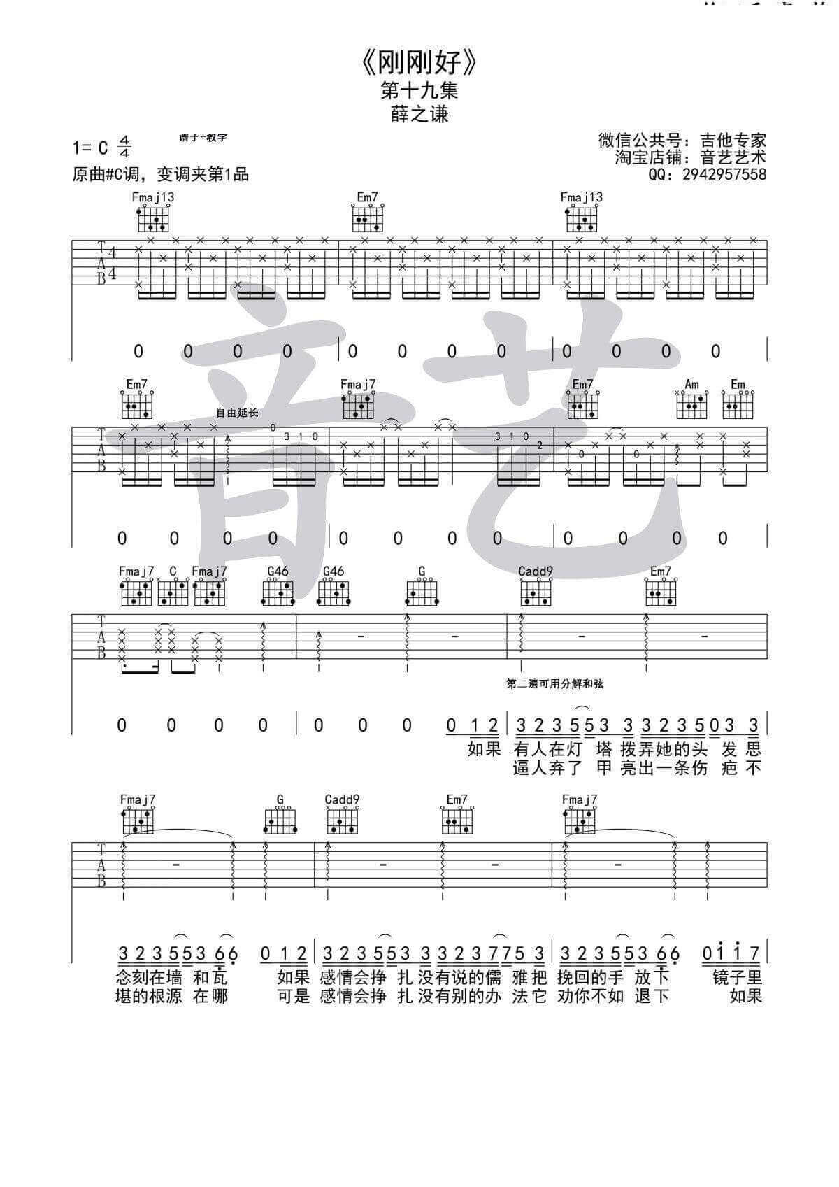 刚刚好吉他谱 - 薛之谦 - C调吉他弹唱谱