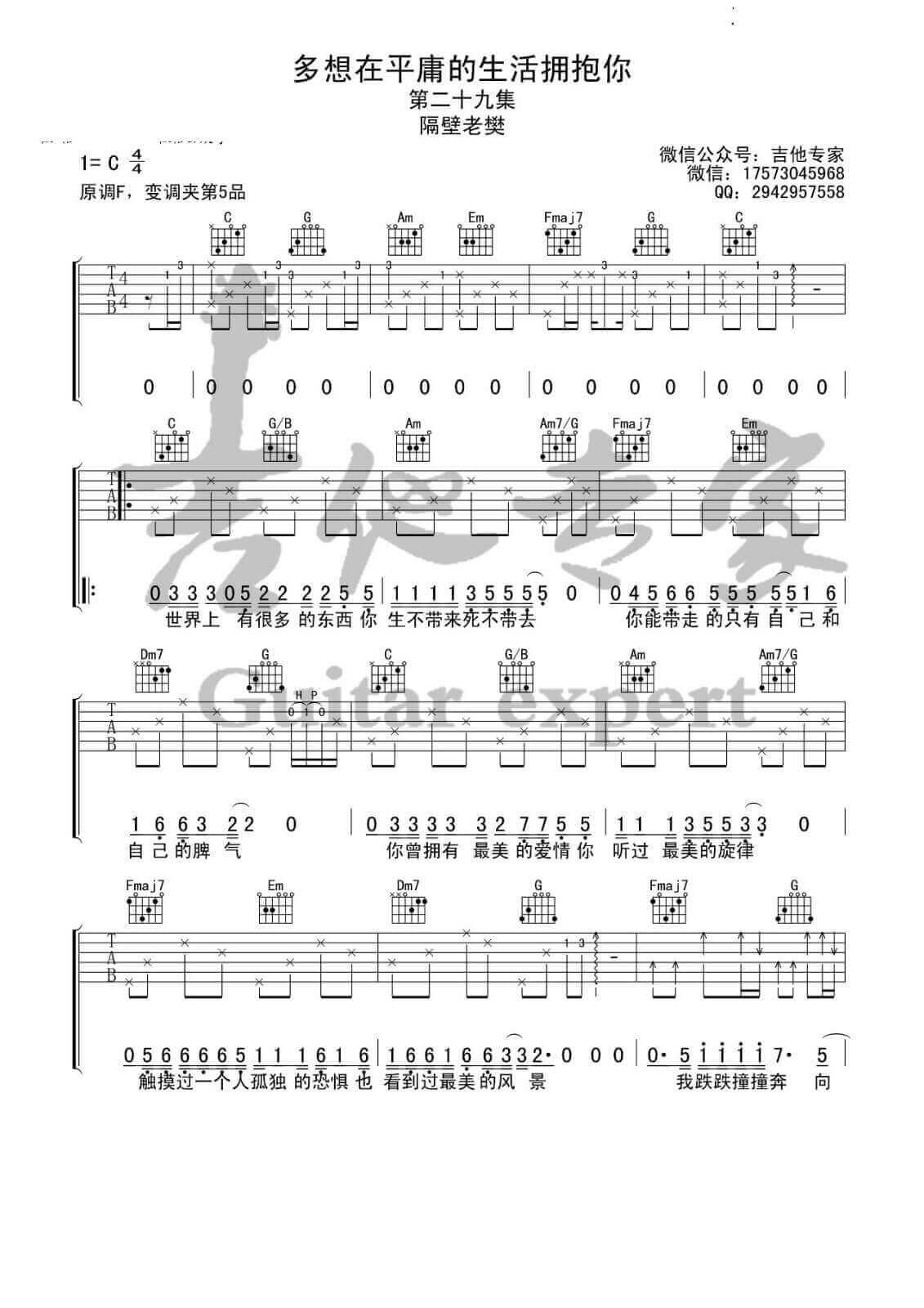 多想在平庸的生活拥抱你吉他谱 - 隔壁老樊 - C调吉他弹唱谱