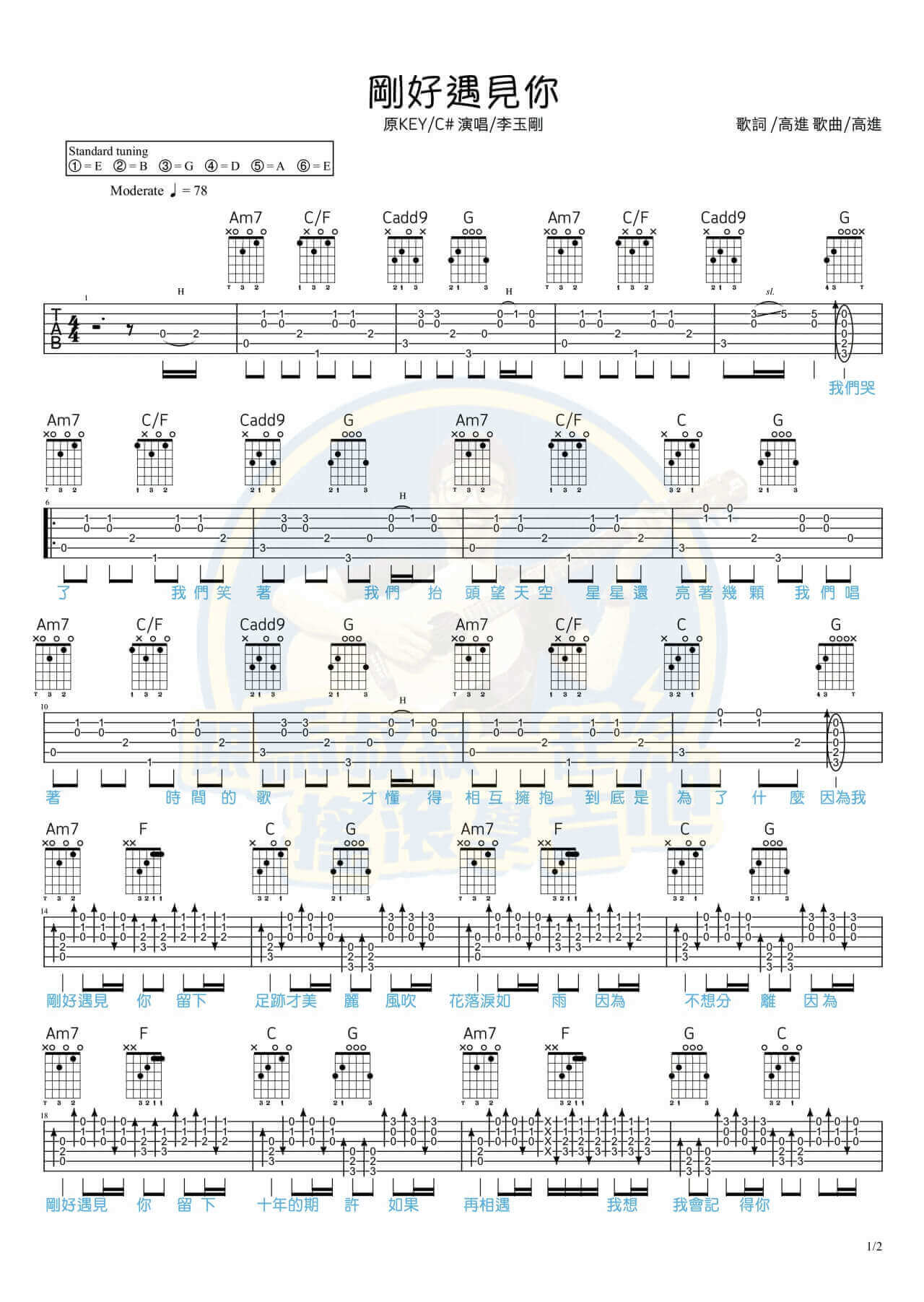 琴谱网为您精心推荐 刚好遇见你 高清图谱