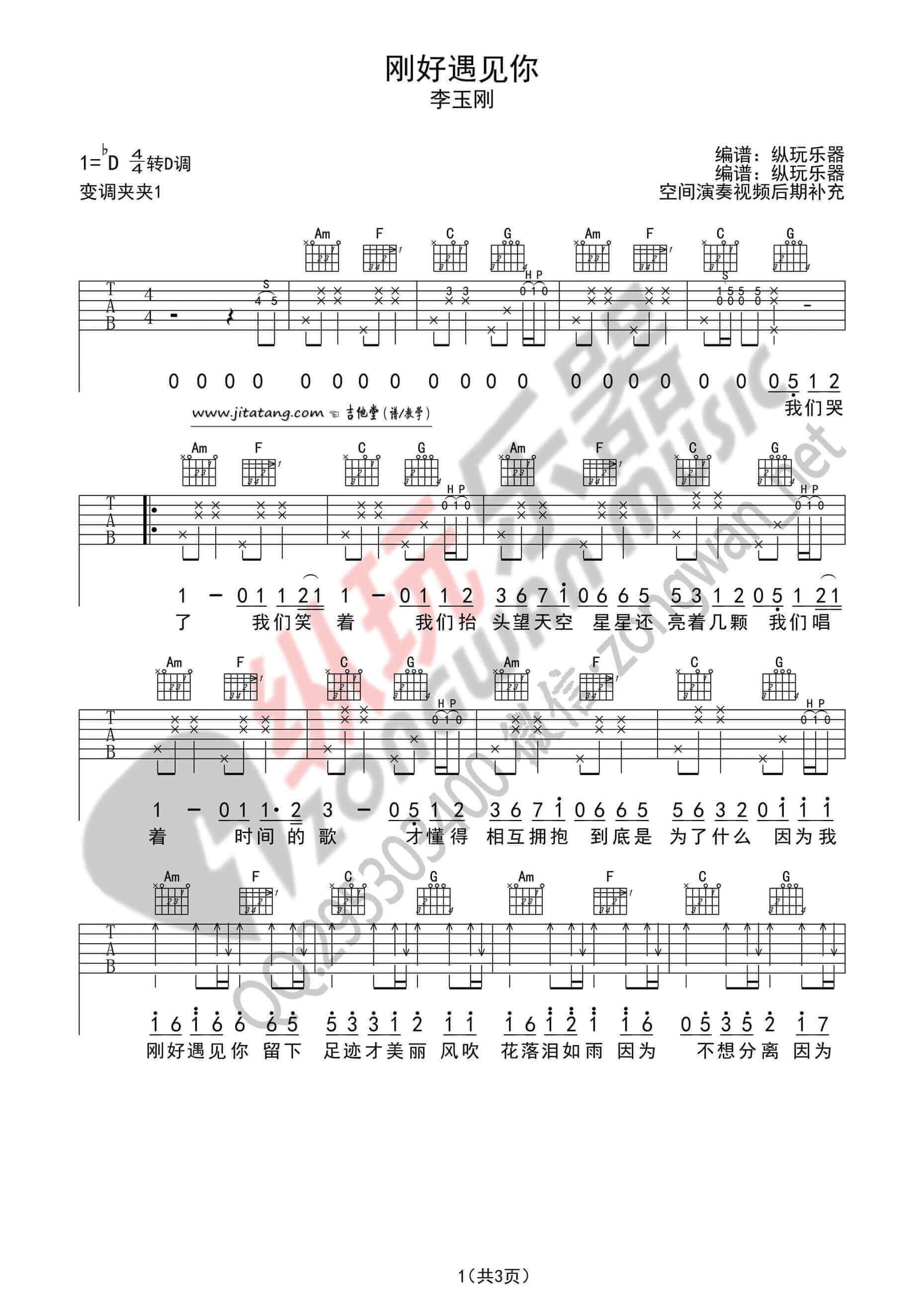 曲谱介绍: 刚好遇见你吉他谱采用D调,由纵玩乐器编配。重要提示:目前吉他谱更新啦,学完这首后,顺便把下首学了吧。