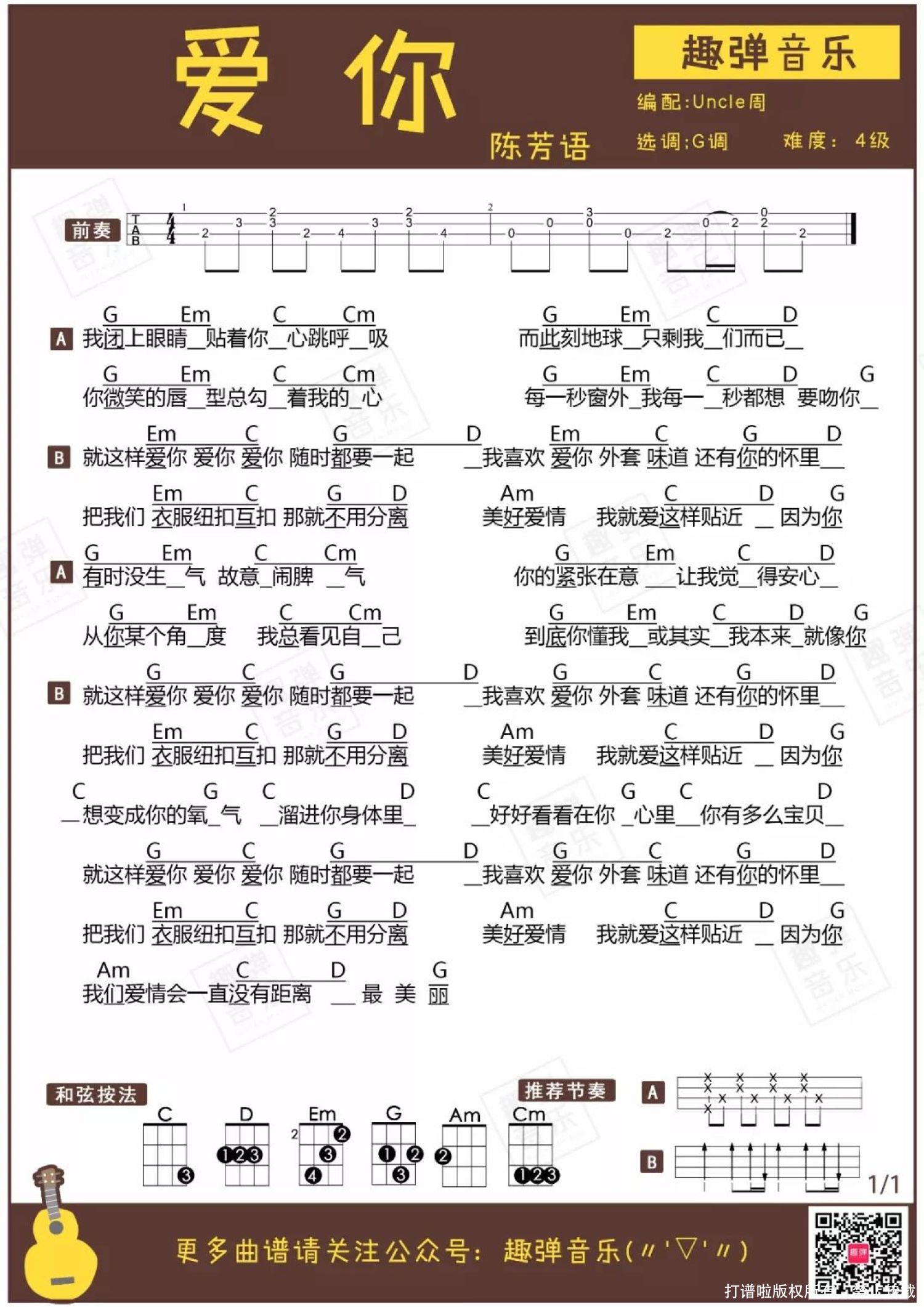 当前位置:琴谱网>尤克里里>爱你