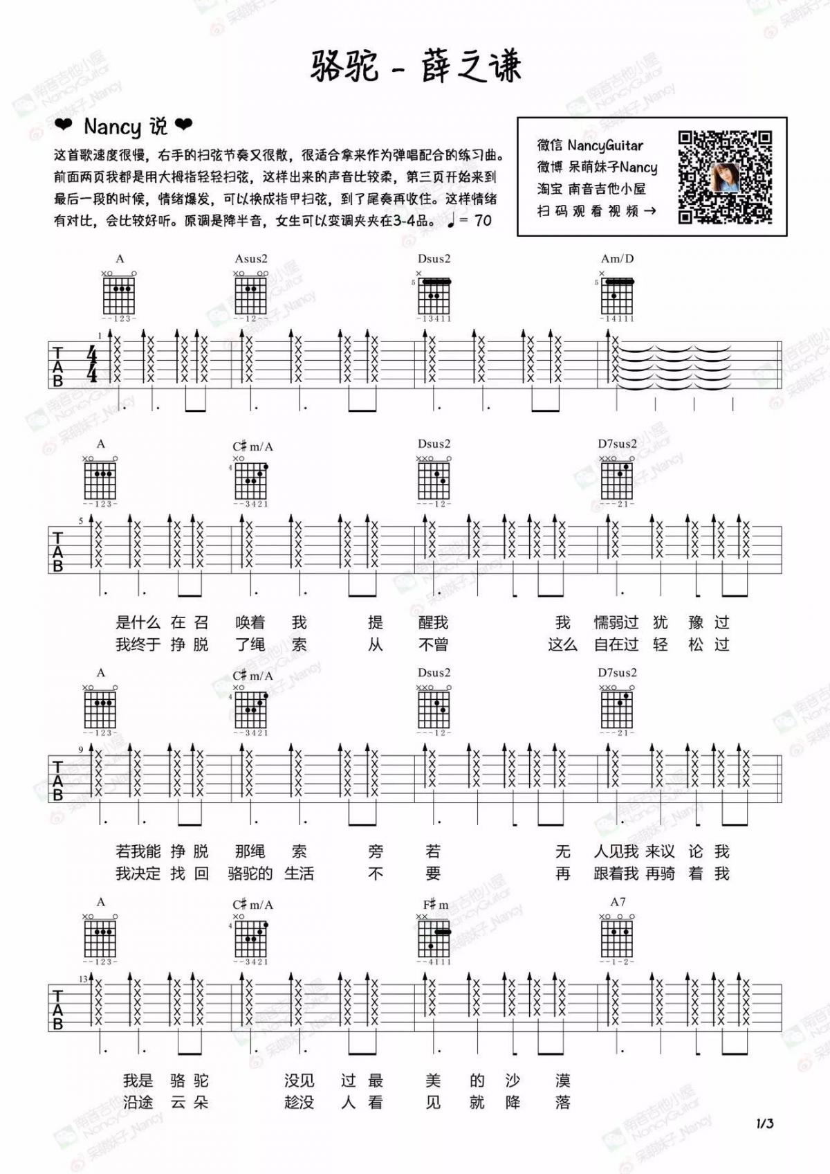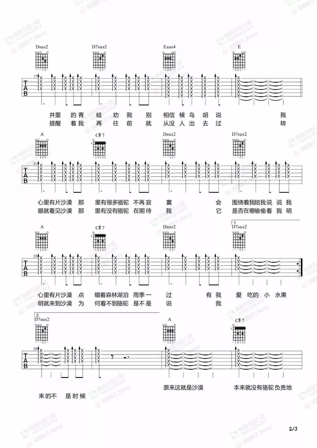 曲谱介绍: 骆驼《骆驼_》吉他弹唱谱,共有3张高清图谱。