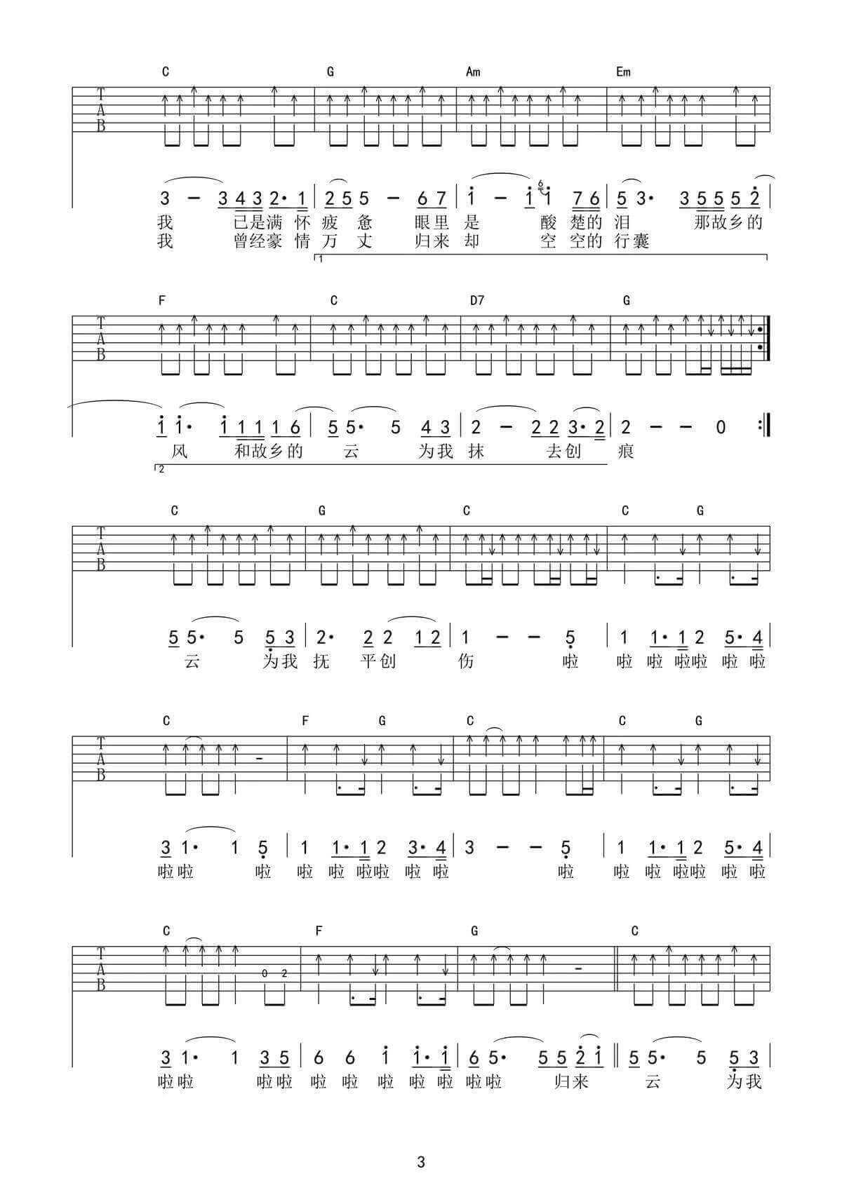 当前位置:琴谱网>吉他弹唱>故乡的云