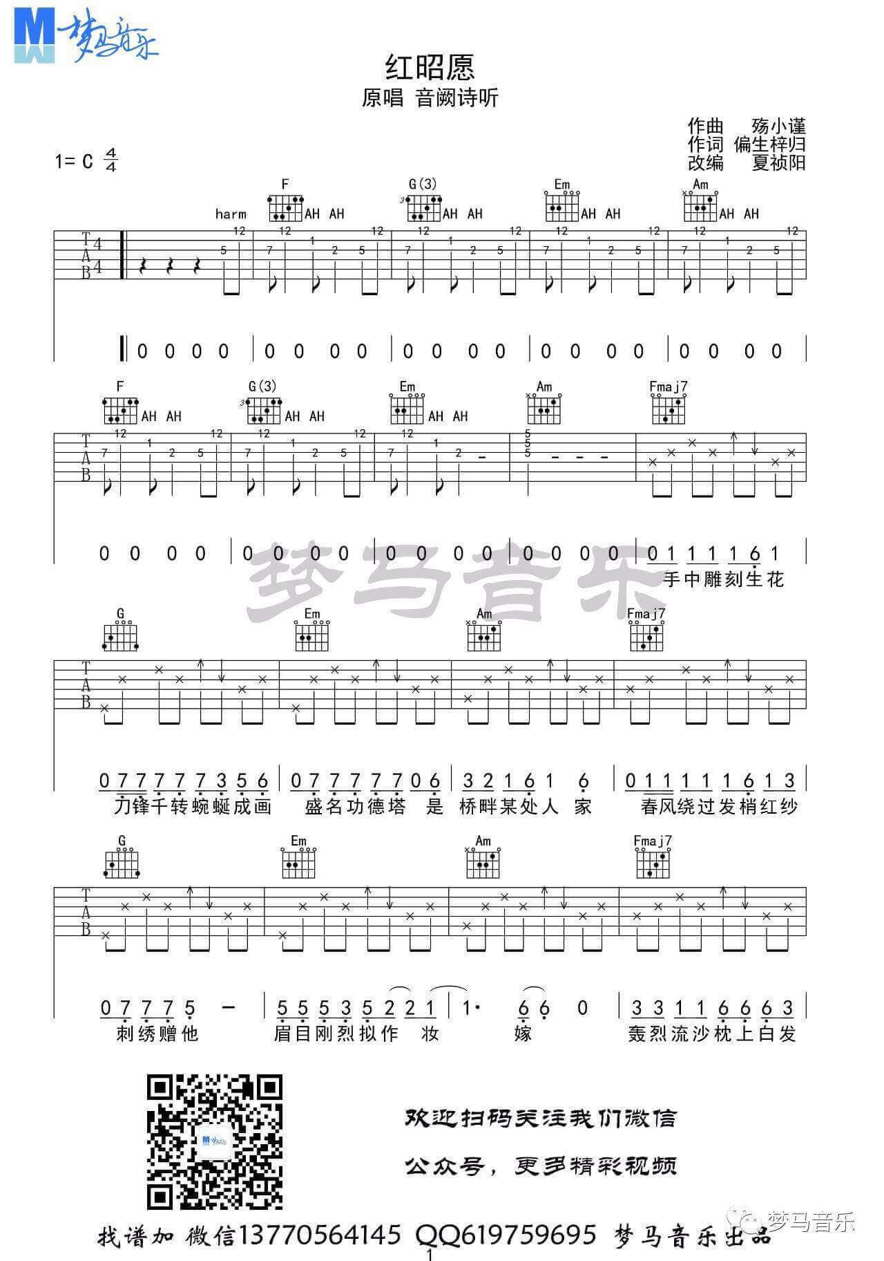 吉他弹唱C调来源:梦马音乐251 浏览2024-01-28 18:58发布图谱共4页