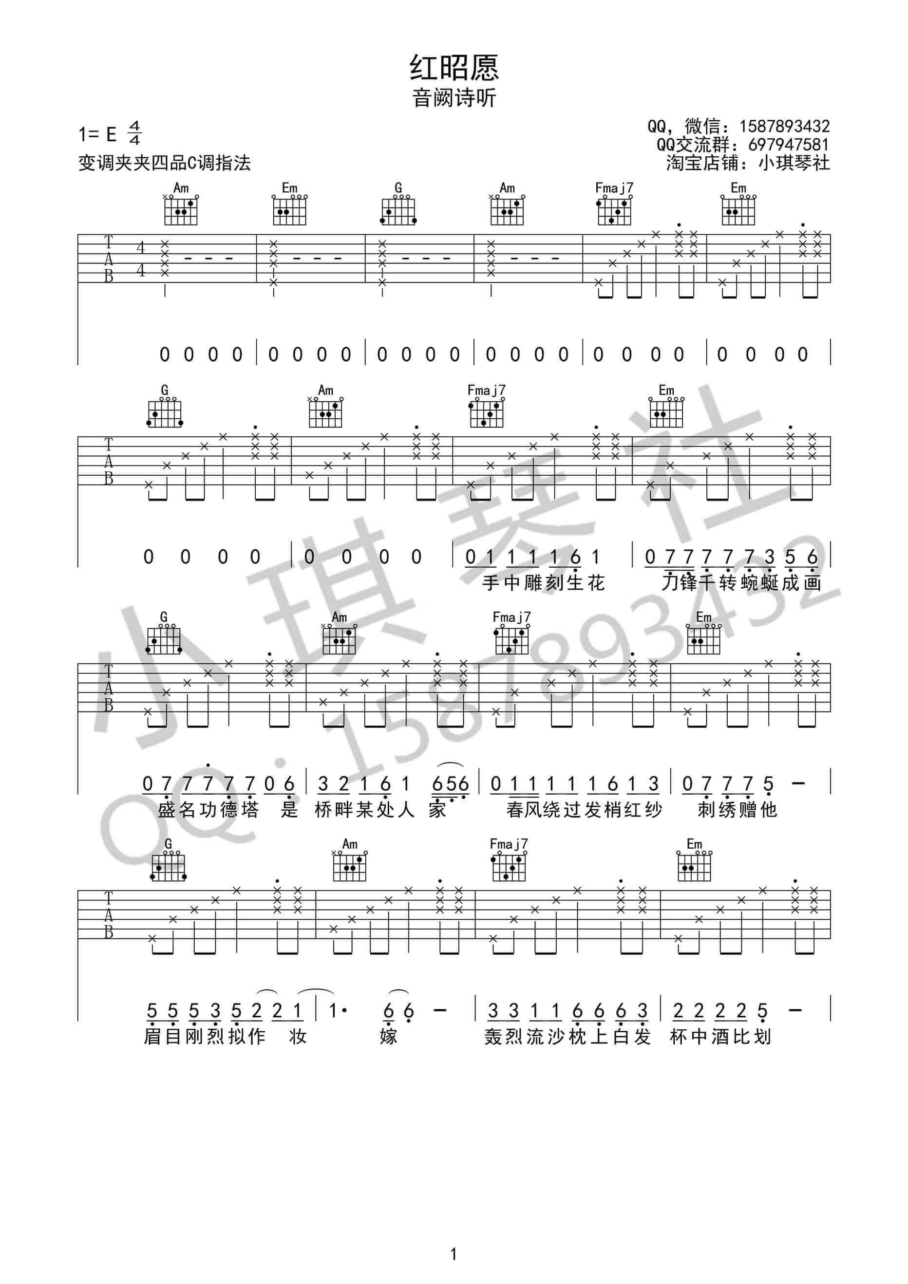 红昭愿吉他谱 - 音阙诗听 - C调吉他弹唱谱