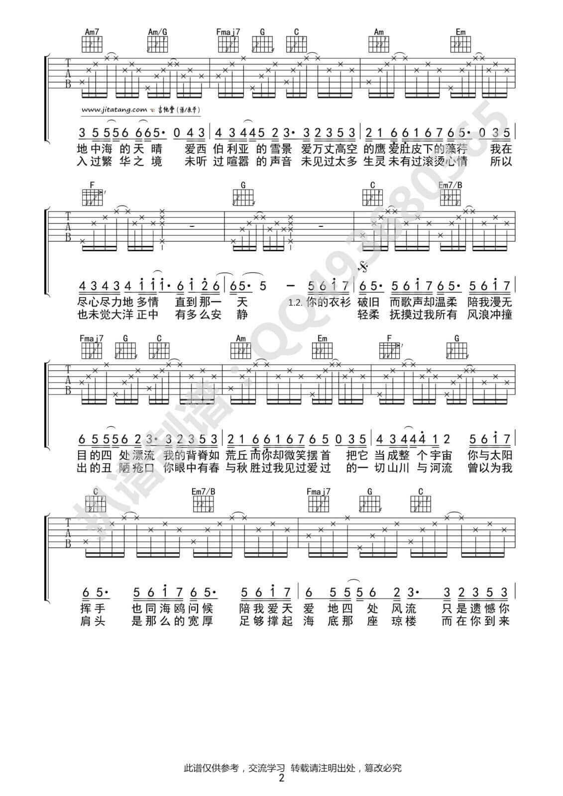 曲谱介绍: 化身孤岛的鲸吉他谱采用了C调指法编配完成。除了这首谱以外,我乐意吉他谱也非常不错,速度去围观一下吧!