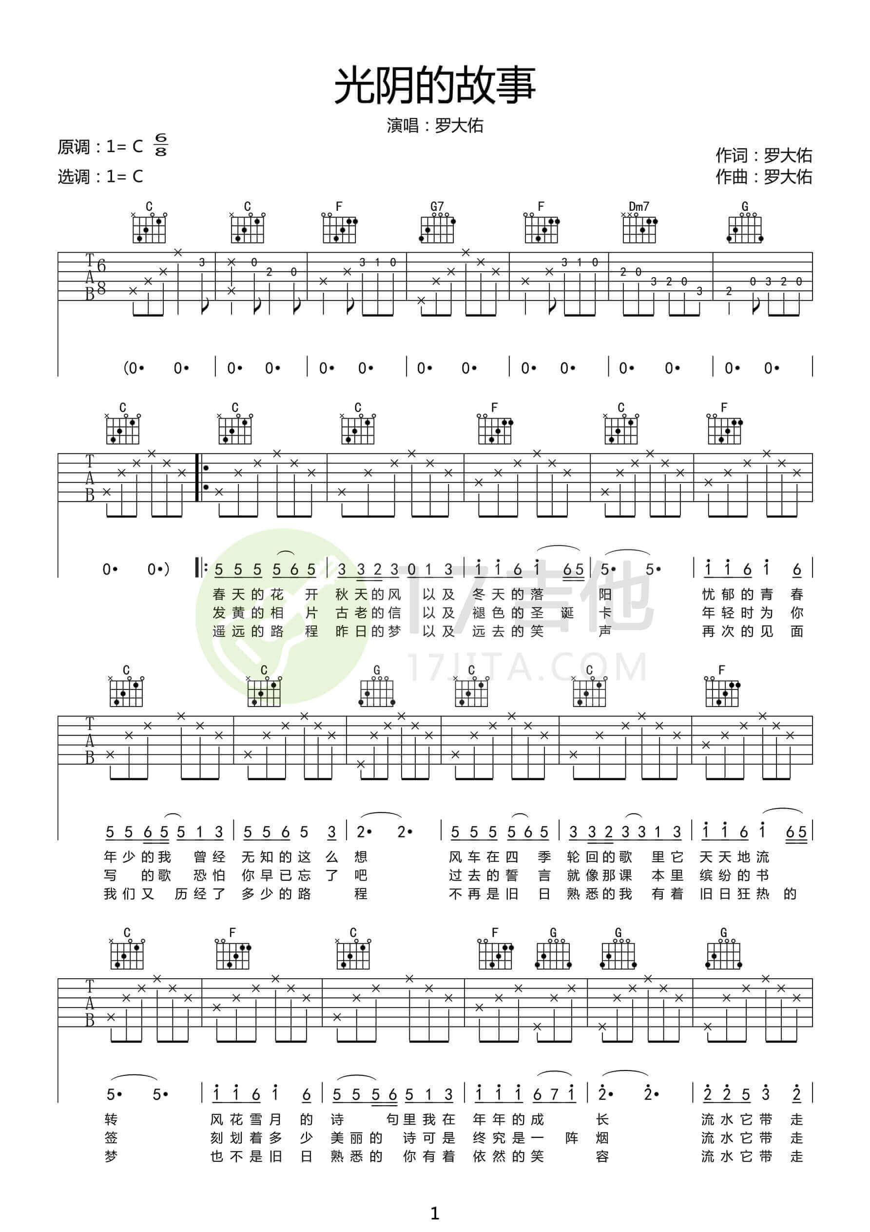 当前位置:琴谱网>吉他弹唱>光阴的故事