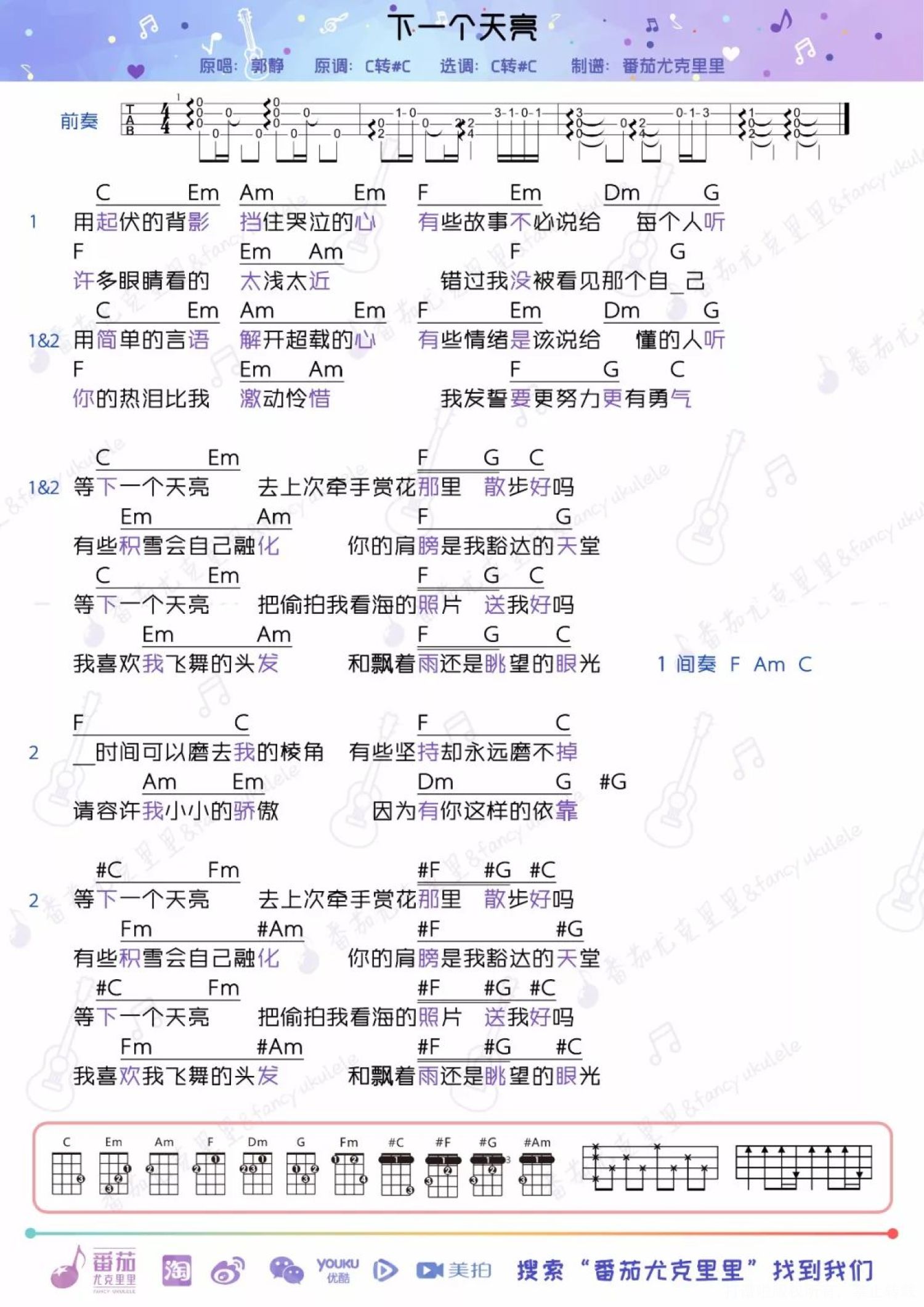 曲谱介绍: 《下一个天亮》尤克里里谱