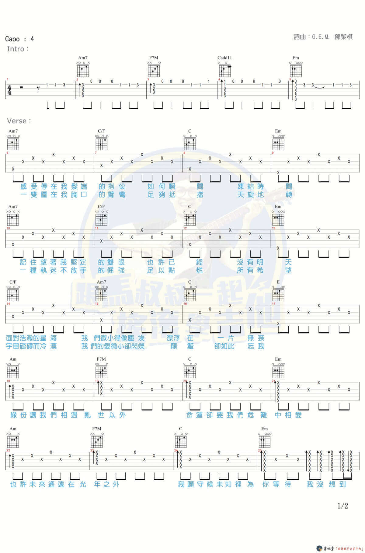 当前位置:琴谱网>吉他弹唱>光年之外