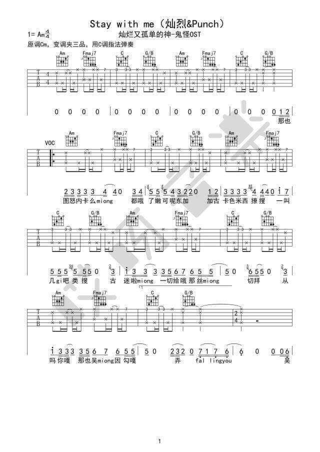 Stay with me吉他谱 - Stay - C调吉他弹唱谱