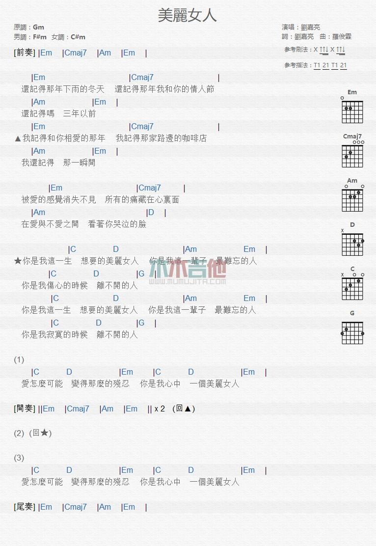 美丽女人_吉他谱 - 美丽女人 - 吉他弹唱谱