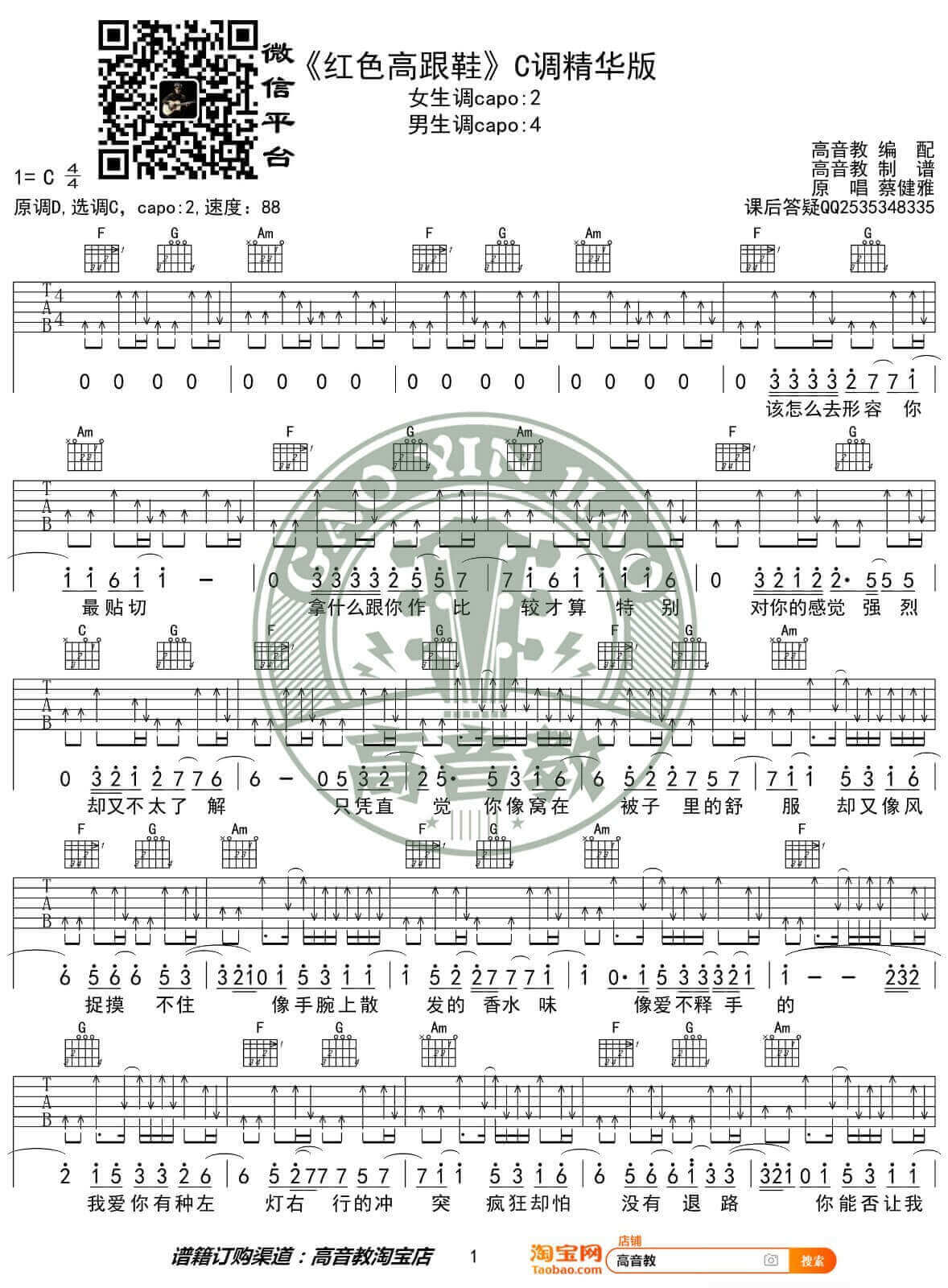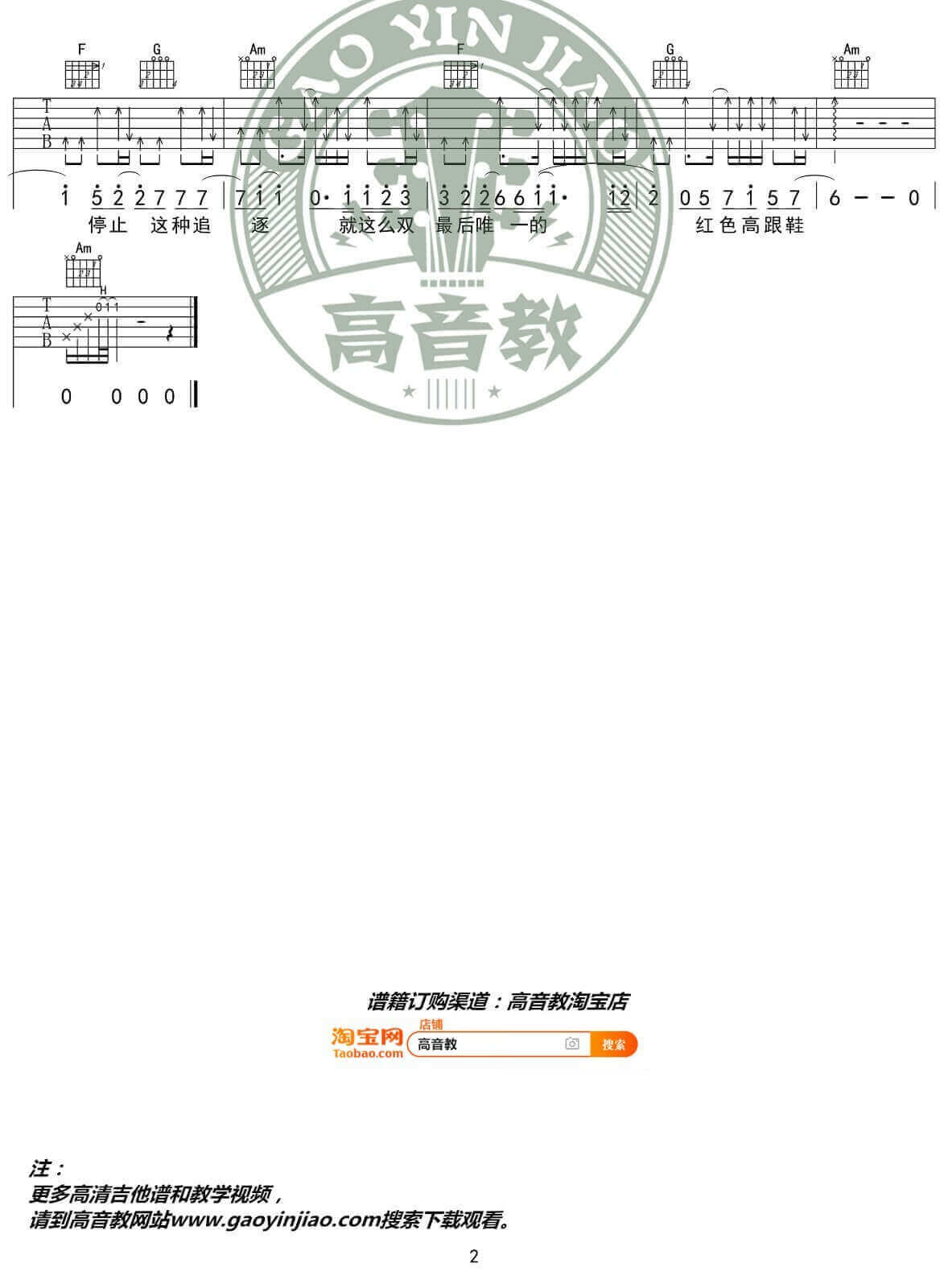 曲谱介绍: 红色高跟鞋吉他谱采用了C调指法,由高音教编配完成。另外,这首爱情码头吉他谱也超级好听,小伙伴们有福啦,还不去练起来?