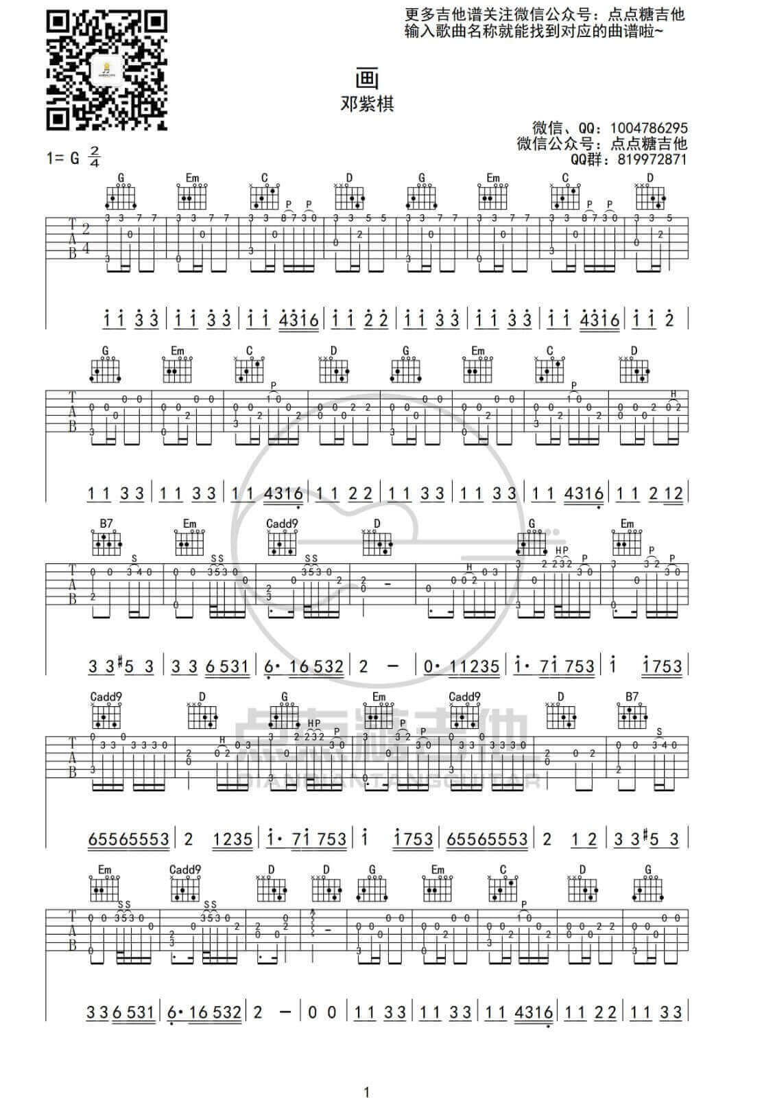 曲谱介绍: 画指弹谱采用了G调指法,由点点糖吉他编配完成。这个歌词不是那种十分惊艳的,但是,每一字每一句所构成的画面感真的是十分唯美,再搭配邓紫棋清亮高亢的嗓音,这就是一首绝美的音乐作品。这首寒雨吉他谱也很帅,快点去学习吧,没学会的小伙伴要继续加油喔,稳!