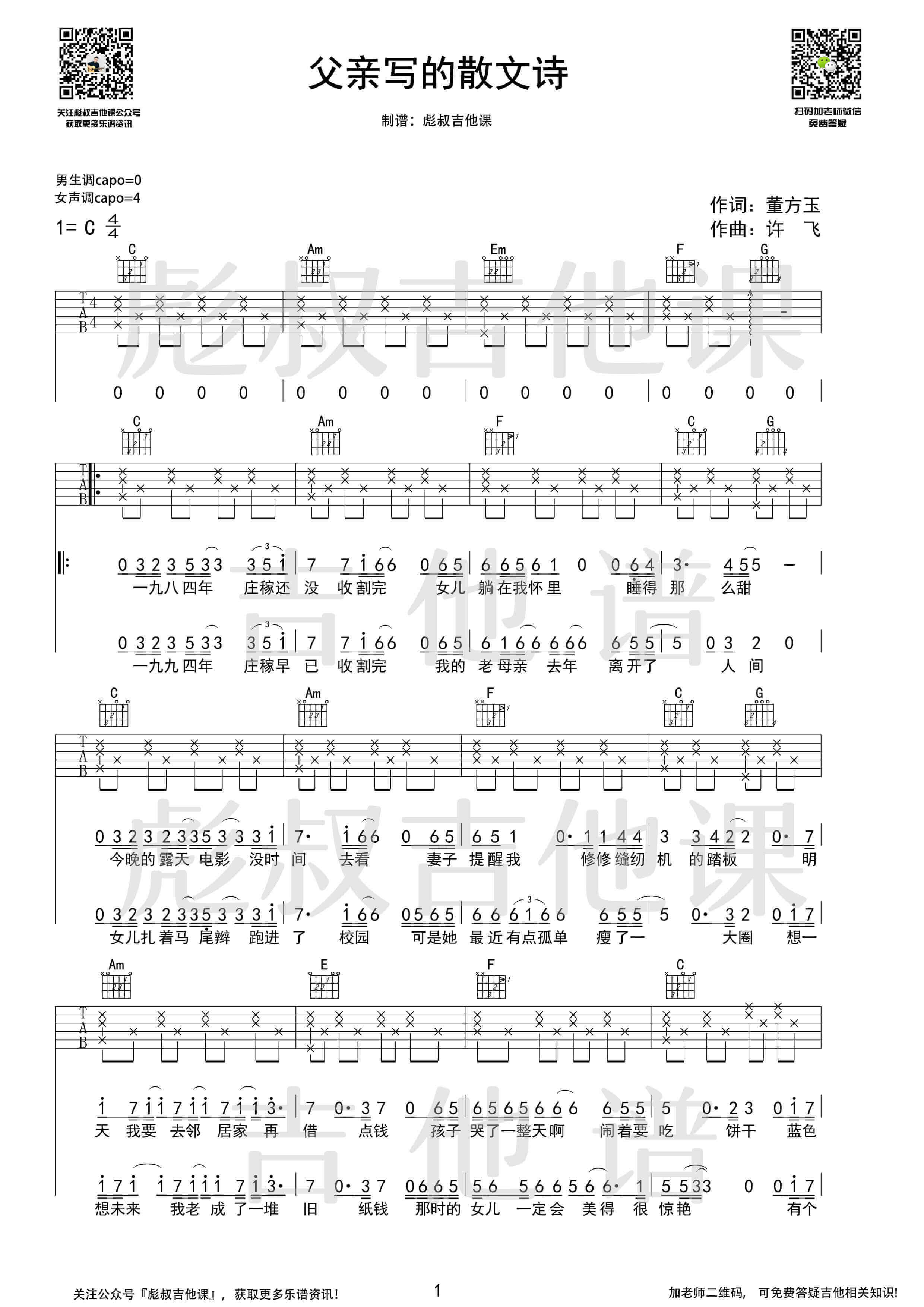 父亲写的散文诗吉他谱 - 许飞 - C调吉他弹唱谱