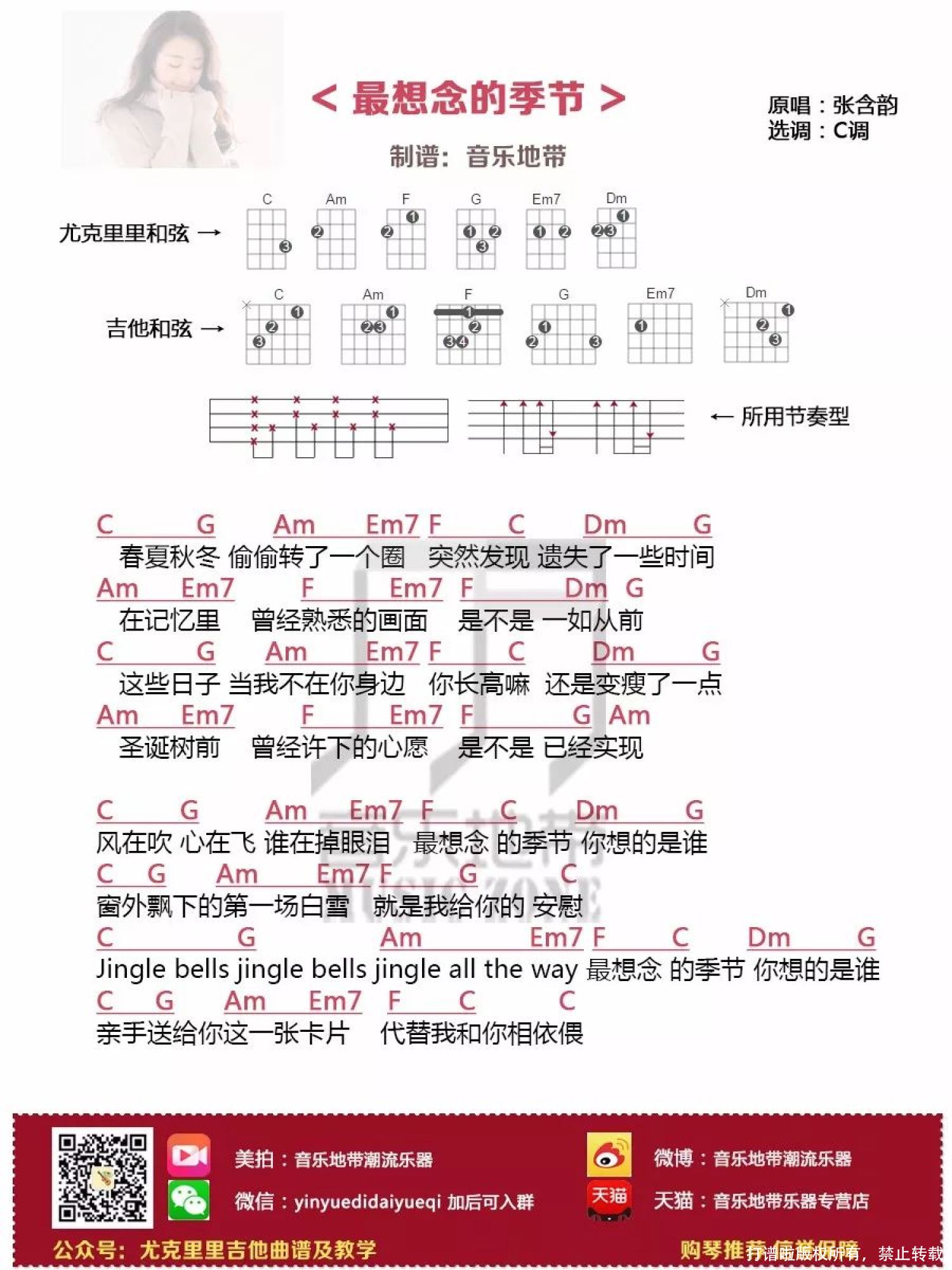 曲谱介绍: 《最想念的季节》尤克里里谱
