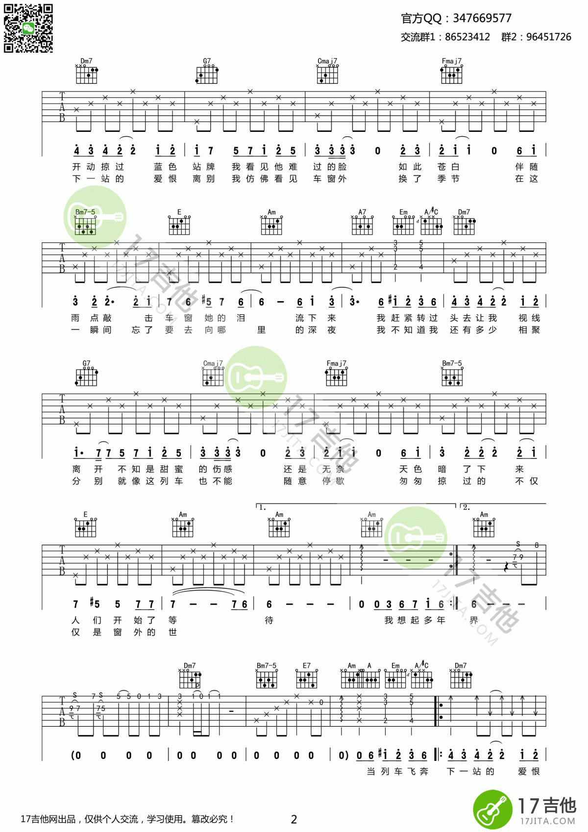 当前位置:琴谱网>吉他弹唱>车站