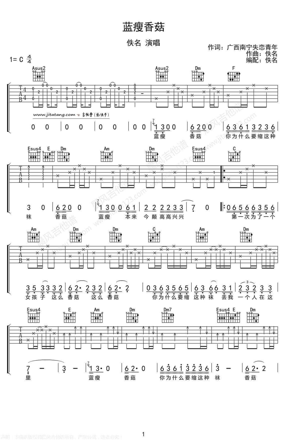 当前位置:琴谱网>吉他弹唱>蓝瘦香菇