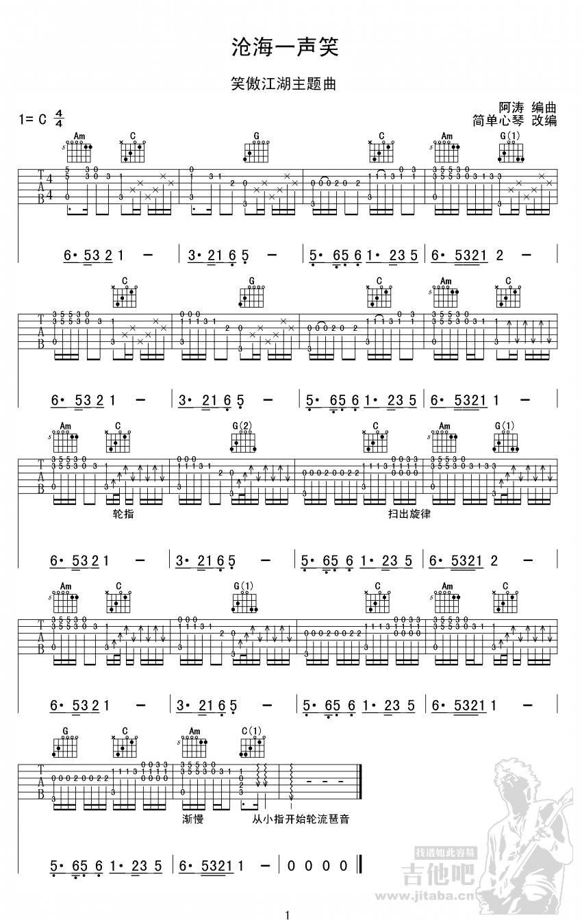 笑傲江湖吉他谱 - 主题曲 - 吉他独奏谱