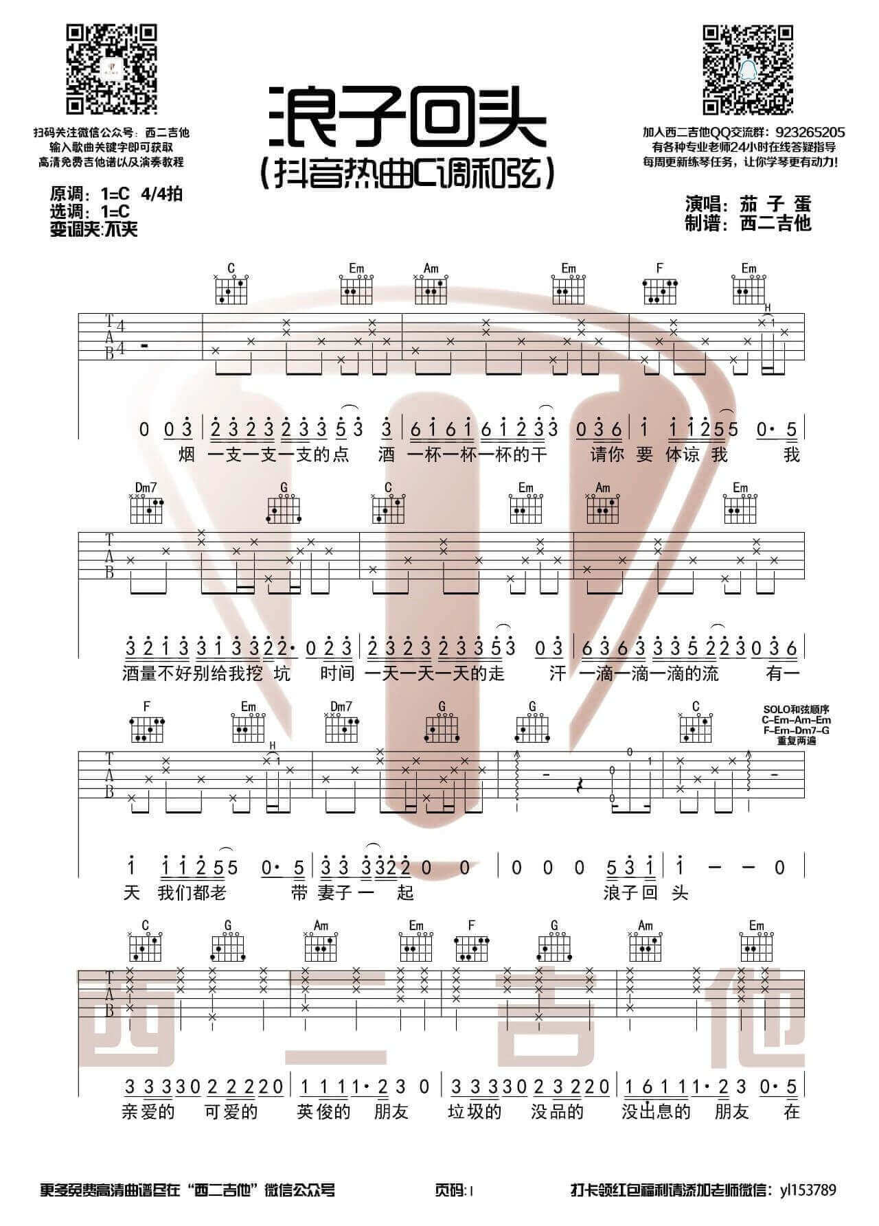 浪子回头吉他谱 - 茄子蛋 - C调吉他弹唱谱
