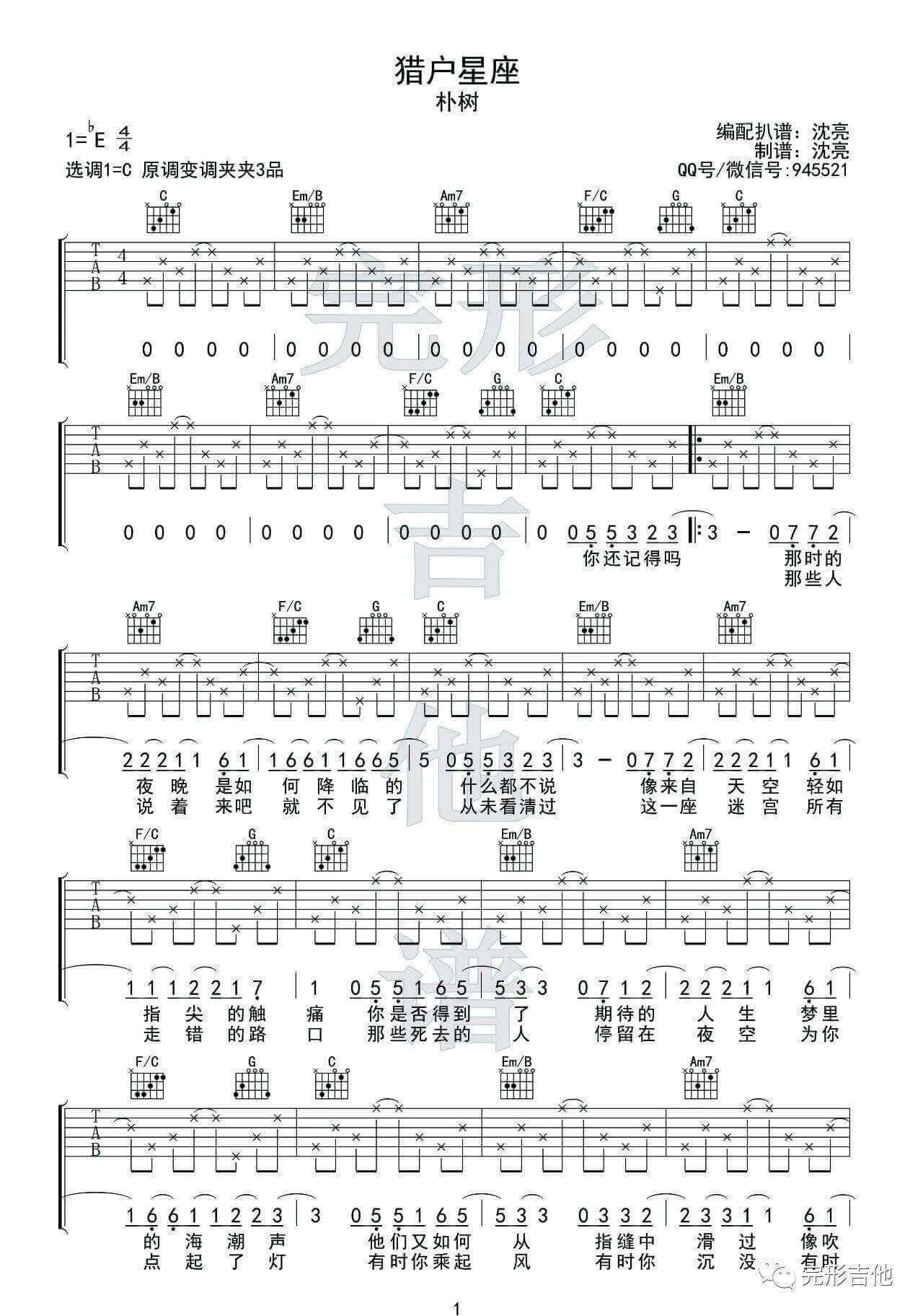 猎户星座吉他谱 - 朴树 - C调吉他弹唱谱
