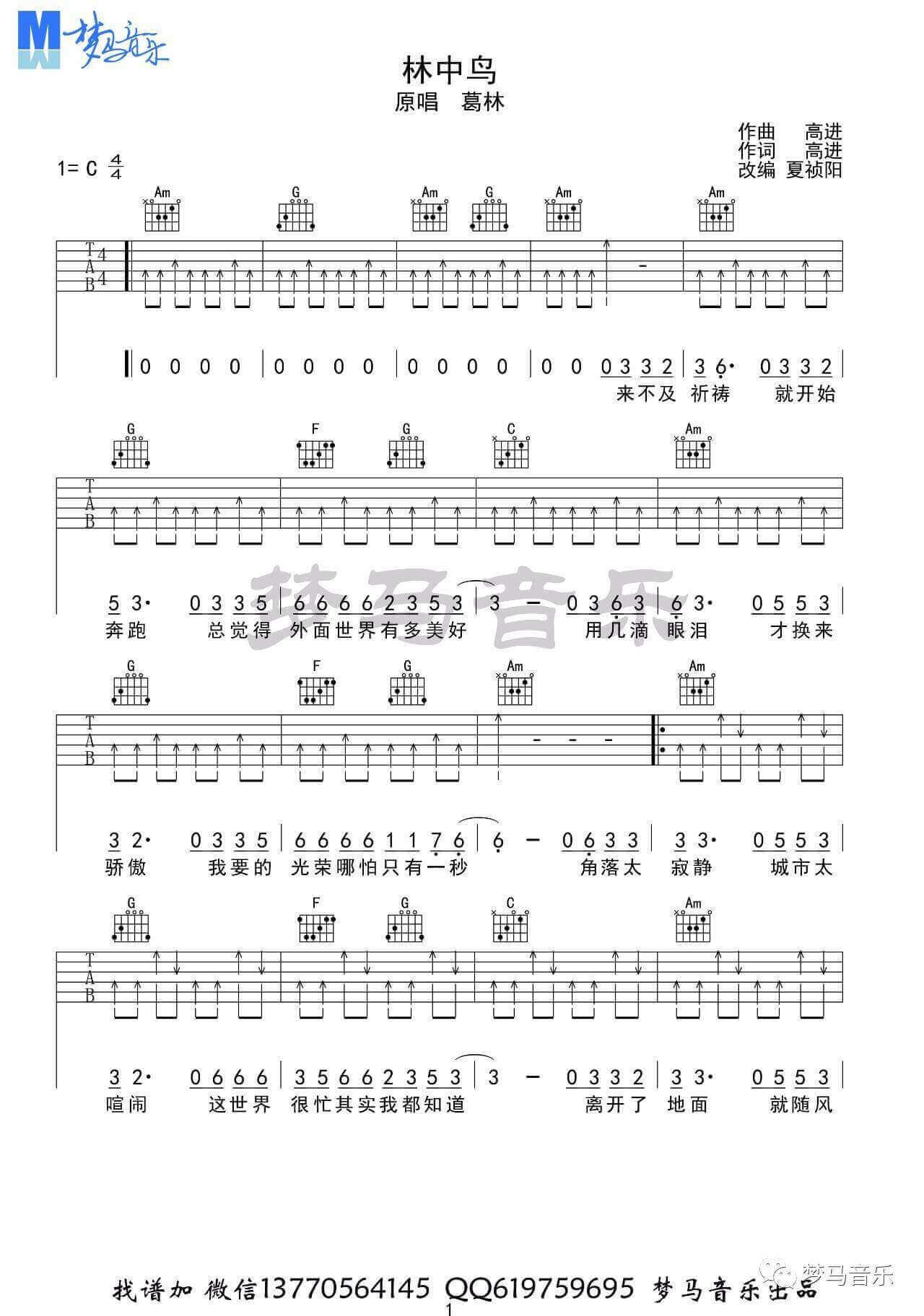 林中鸟吉他谱 - 葛林 - C调吉他弹唱谱