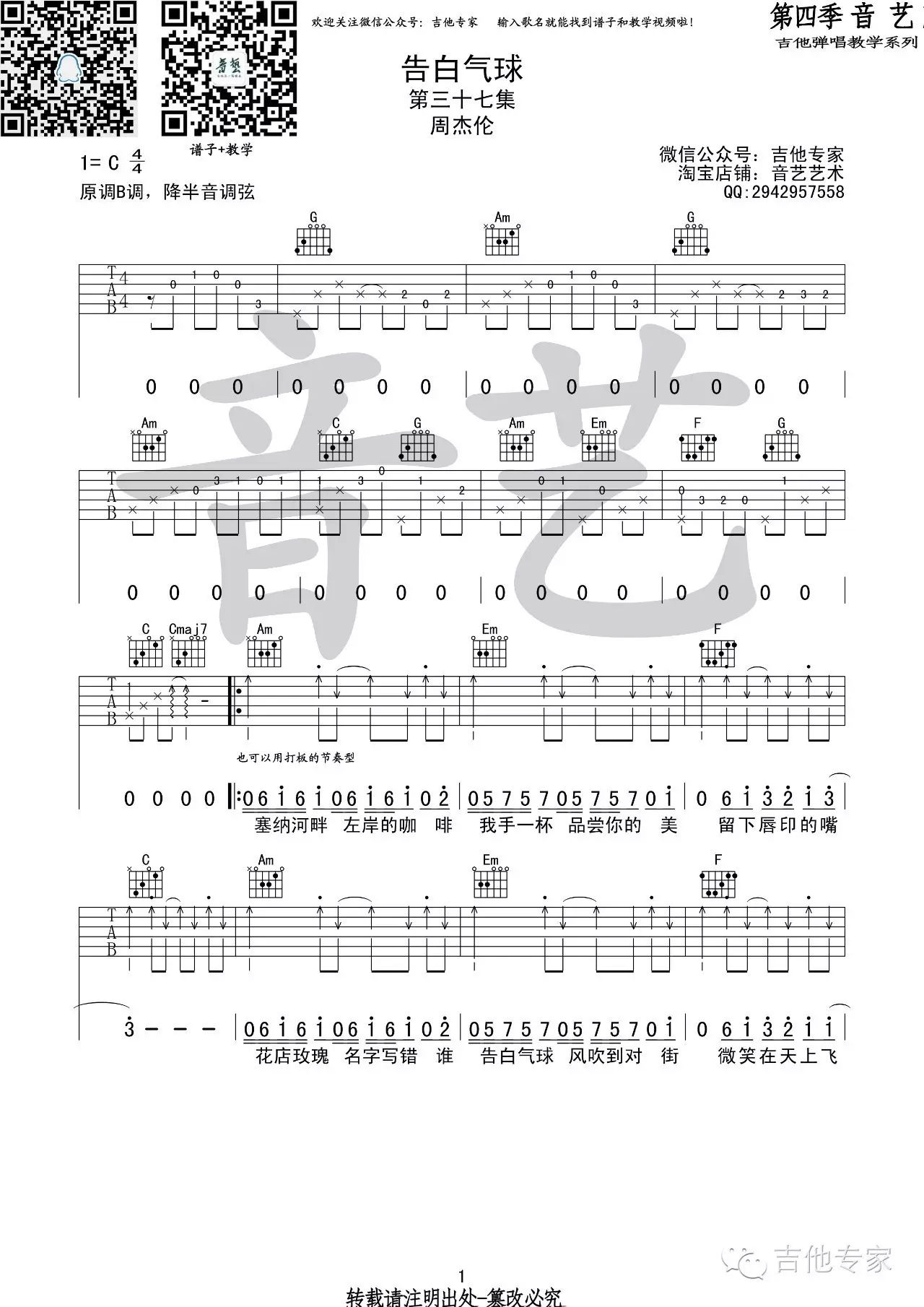 当前位置:琴谱网>吉他弹唱>告白气球