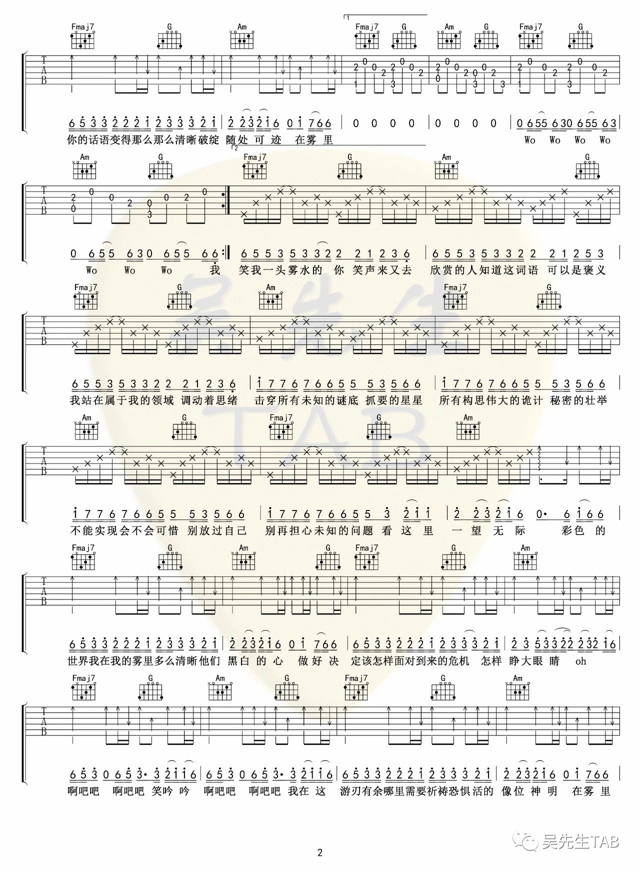 当前位置:琴谱网>吉他弹唱>雾里