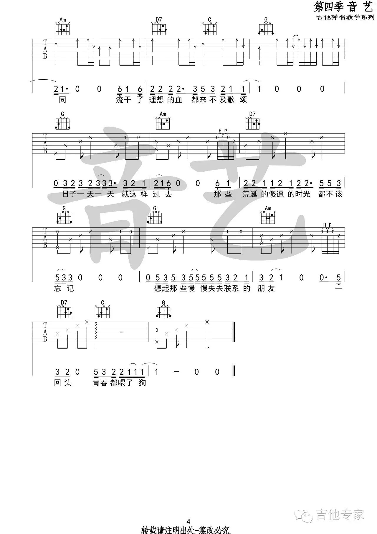 当前位置:琴谱网>吉他弹唱>狗日的青春