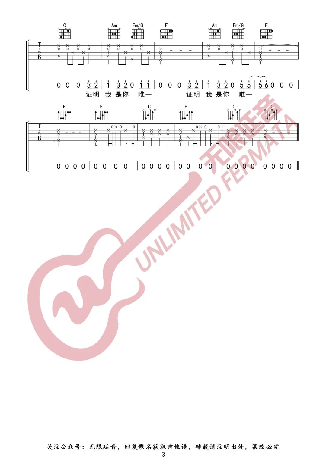 曲谱介绍: 曲谱说明:来自无限延音编配「唯一」吉他谱,本谱采用C调和弦指法编配,演奏建议变调夹夹1品,也可以根据个人音域找到一个适合自己的位置,难度简单。喜欢这首歌的朋友拿起吉他一起练起来吧,有任何问题请留言讨论。