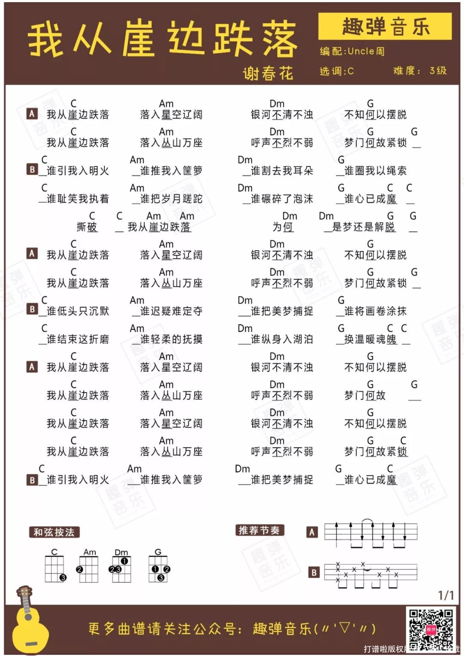 我从悬崖边跌落尤克里里谱