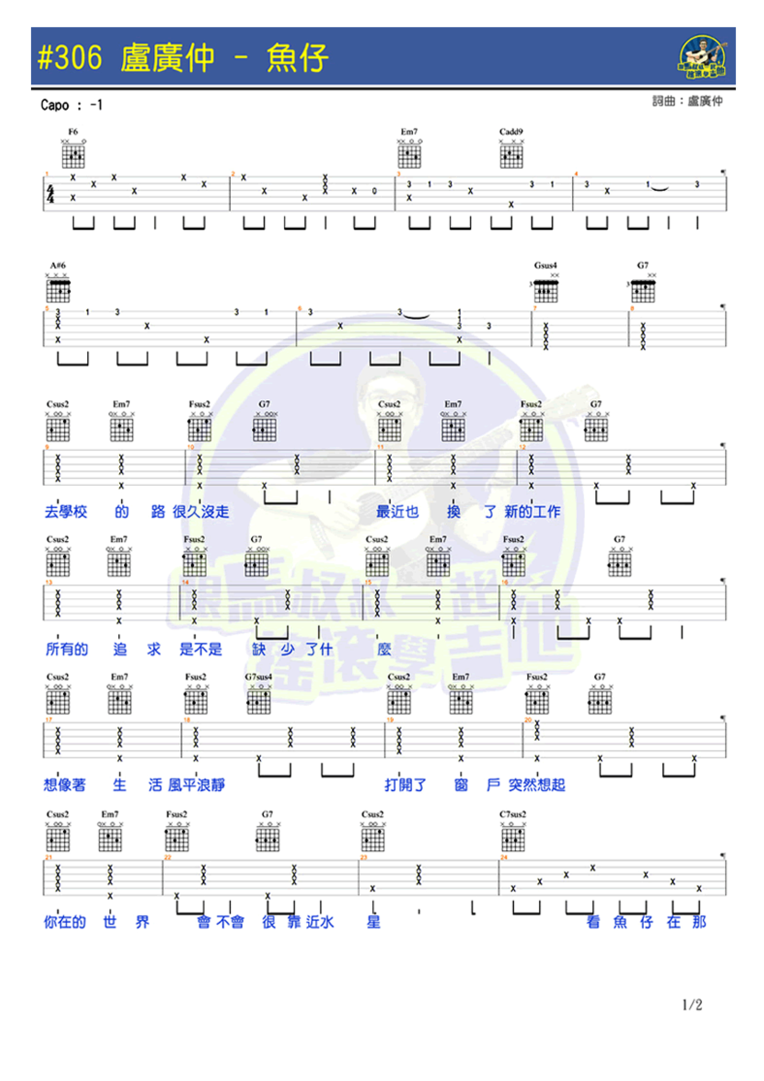 鱼仔吉他谱 - 卢广仲 - 吉他弹唱谱