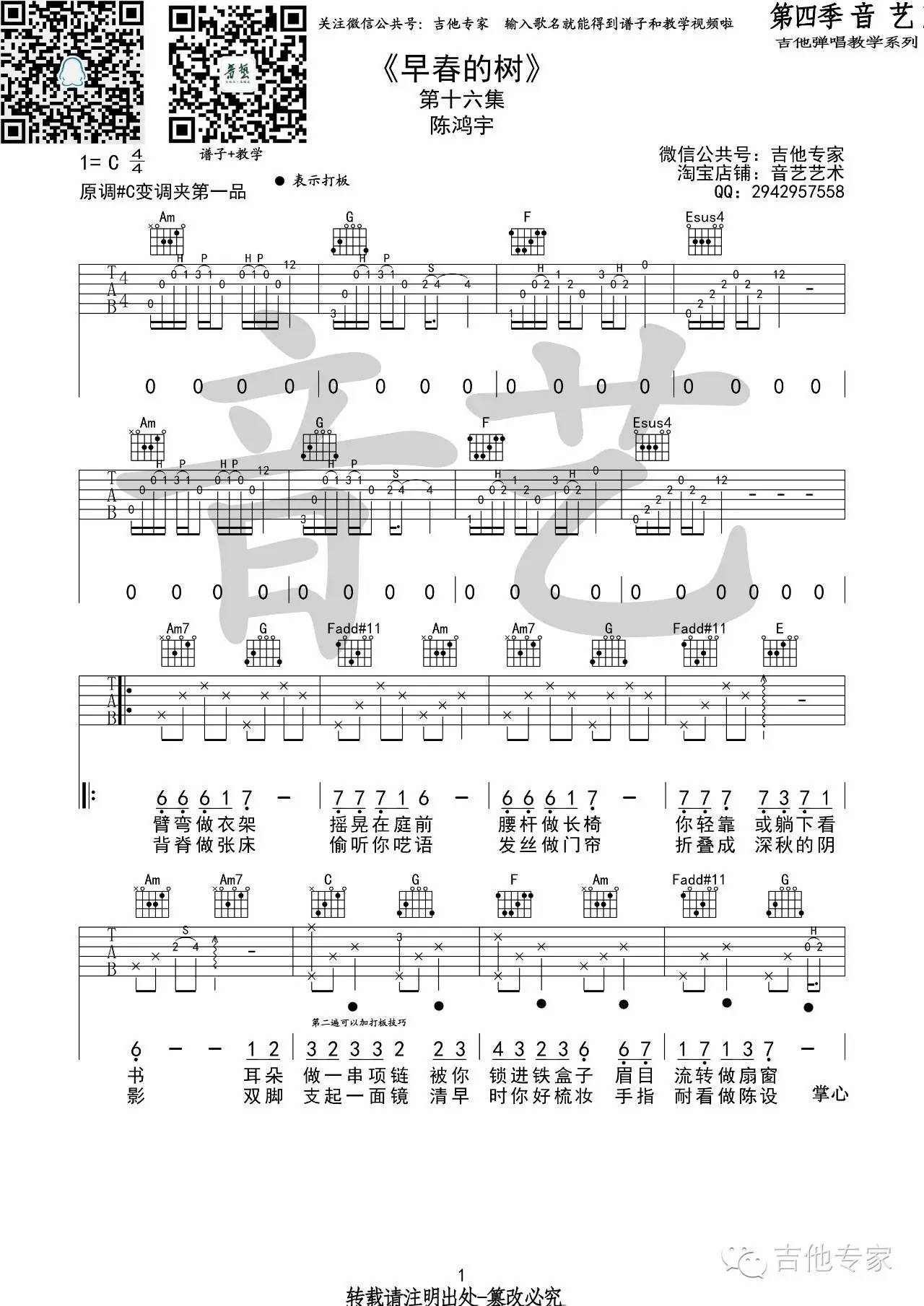 早春的树吉他谱 - 陈鸿宇 - C调吉他弹唱谱