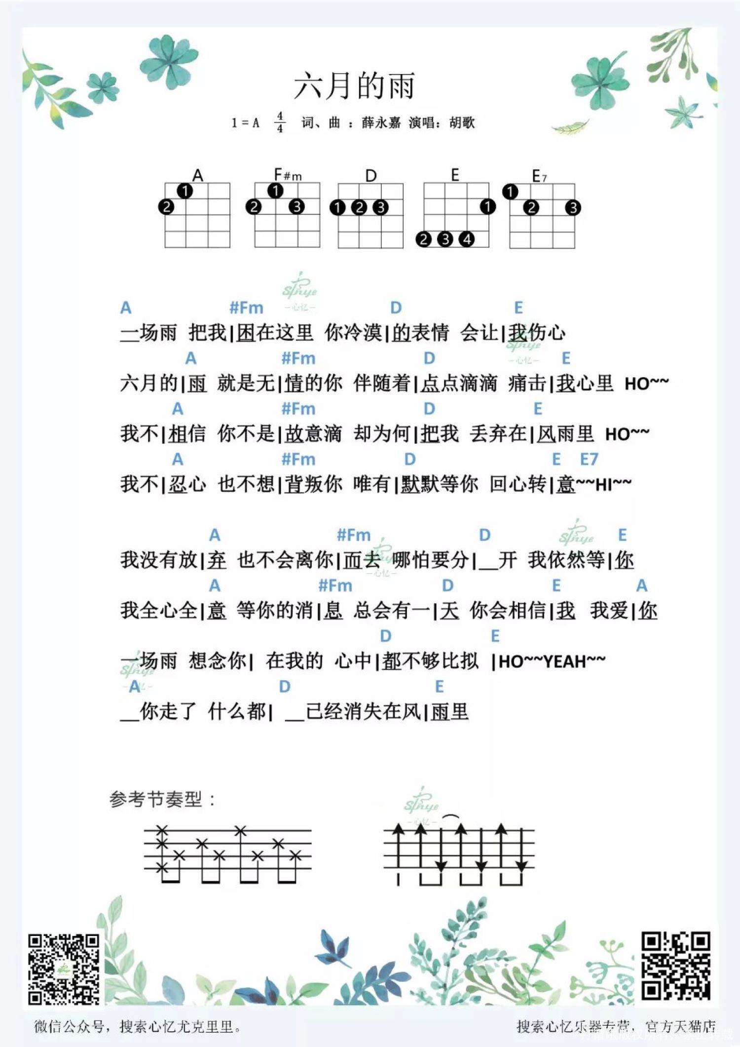 曲谱介绍: 《六月的雨》尤克里里弹唱谱