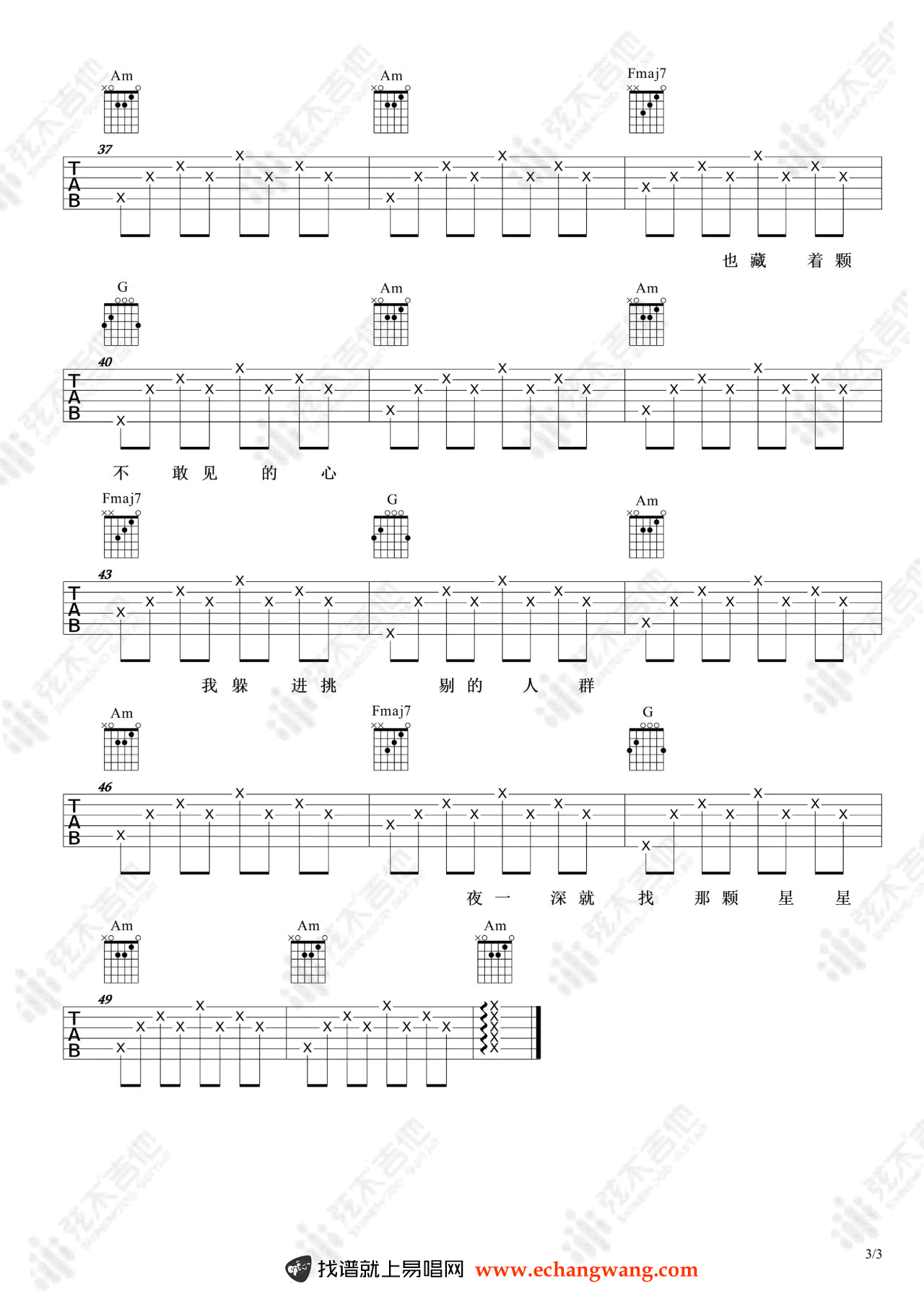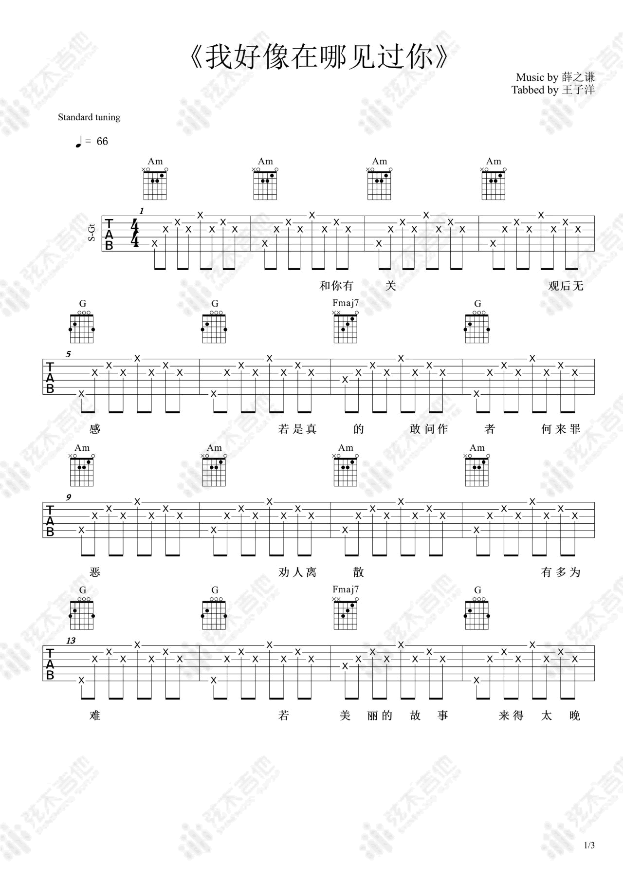 曲谱介绍: 我好像在哪见过你吉他谱,薛之谦演唱,动画电影《精灵王座》的主题曲。我好像在哪见过你吉他六线谱,三张弹唱图片谱。弦木吉他编配出品,琴谱网整理上传。